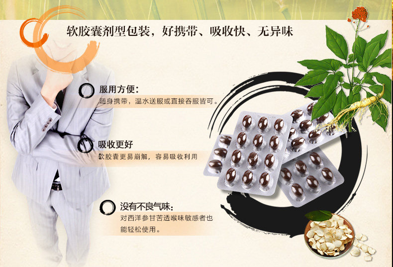 以岭 Американская женьшень мягкая капсула против облигации и питательных продуктов для здоровья добавляет эмбрион эмбрион пшеницы.