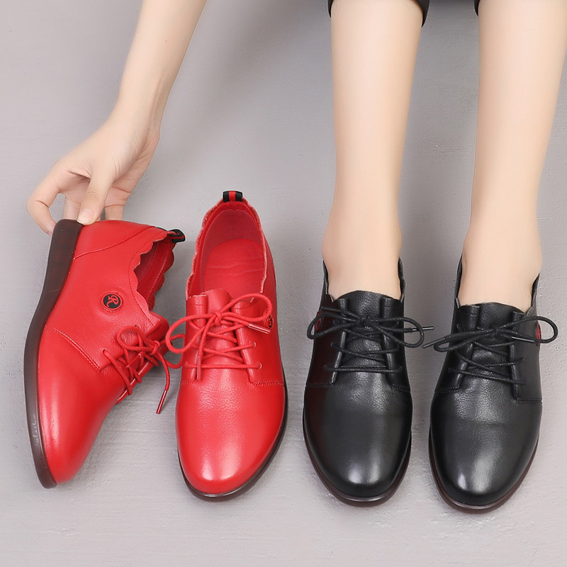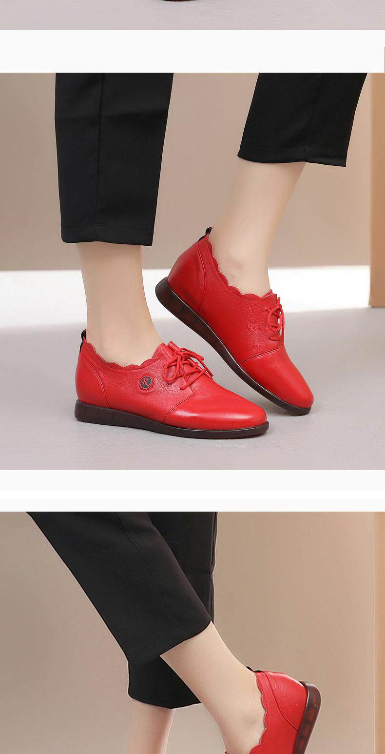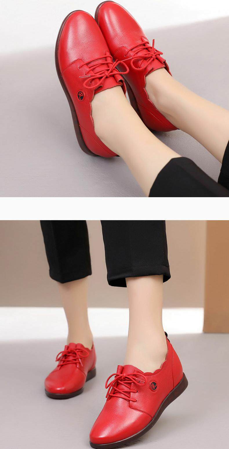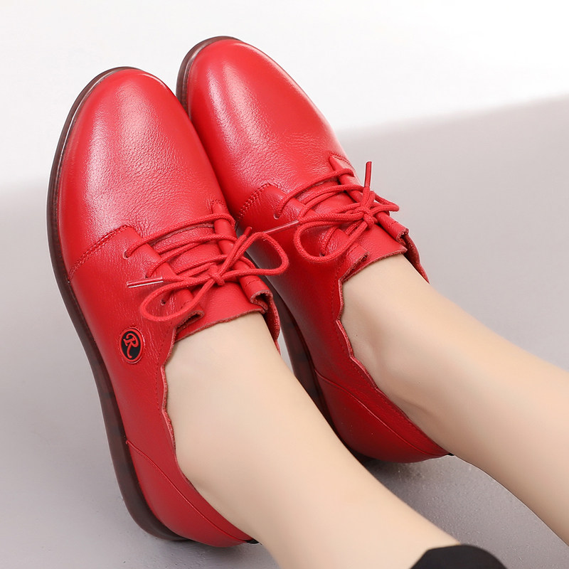 Красная демисезонная обувь для отдыха для кожаной обуви для матери, из натуральной кожи, большой размер