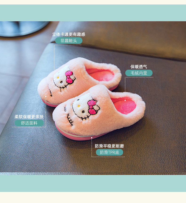 Hello kitty, детские демисезонные нескользящие удерживающие тепло милые тапочки