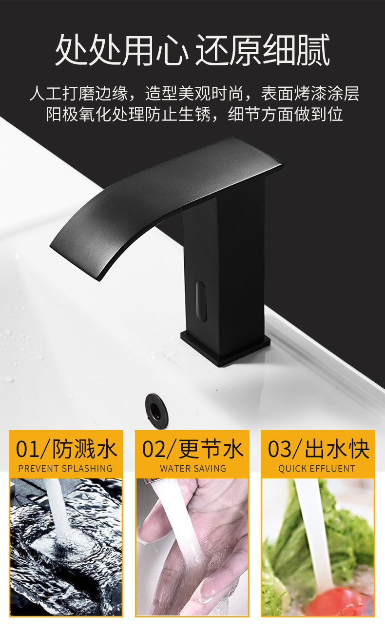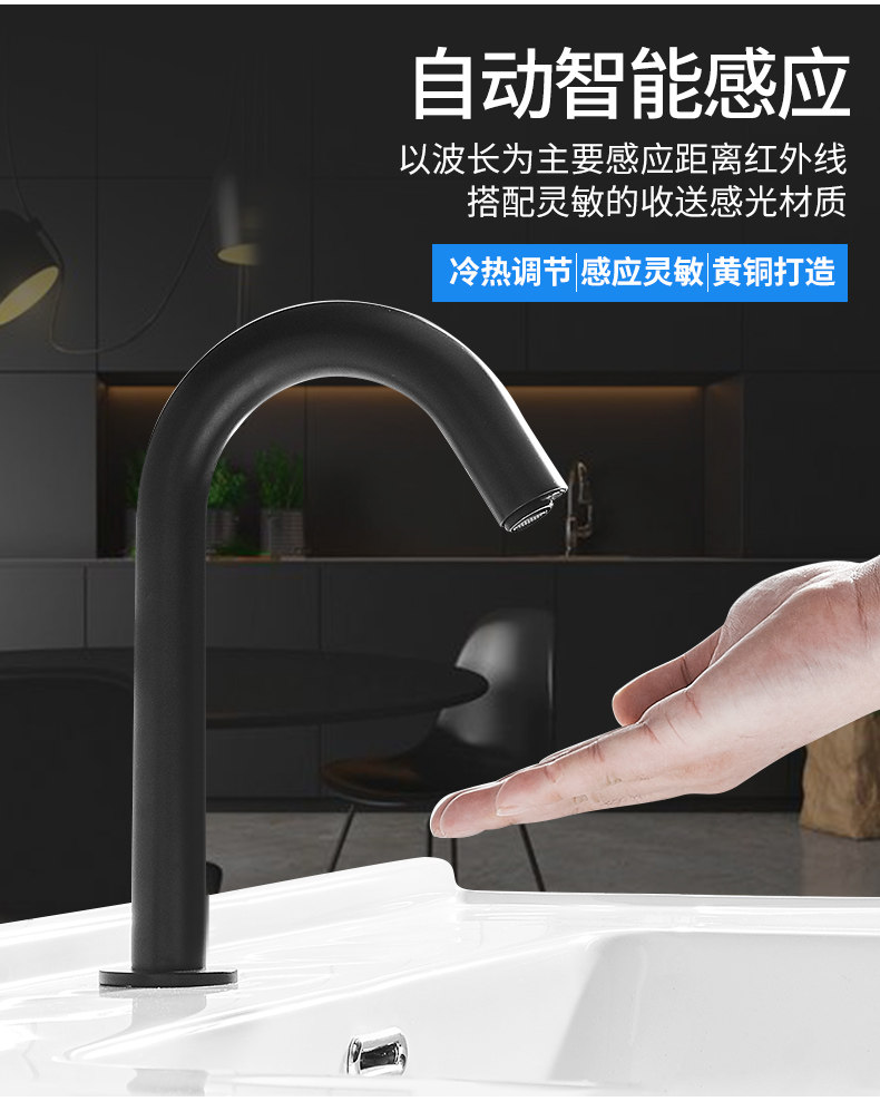Anmon Полностью автоматическая индукционная водопроводная кран медь черный умный кран для одиночного холодного инфракрасного датчика