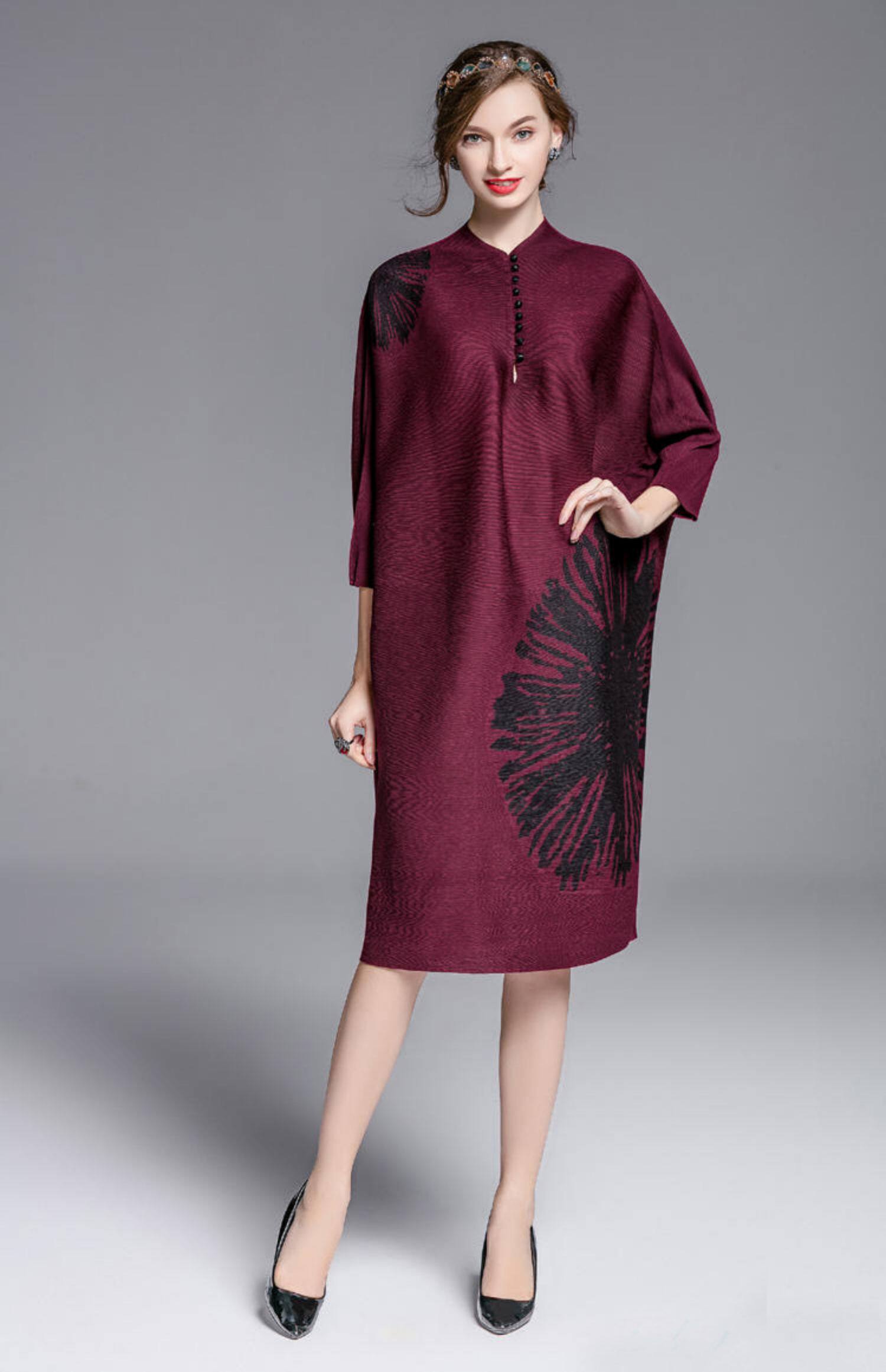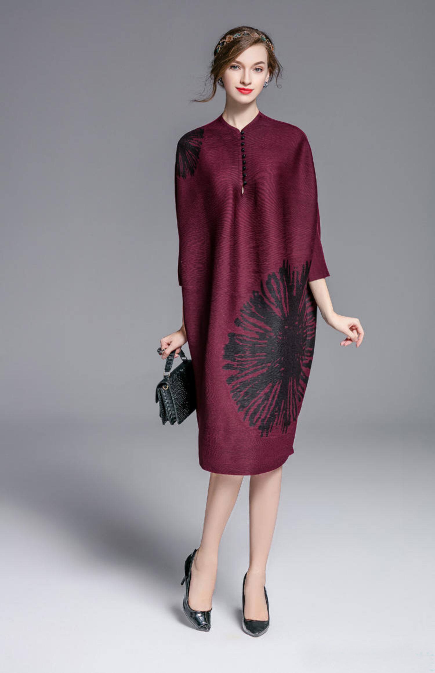 Осеннее платье, темно-бордовая юбка, стиль, оверсайз, большой размер