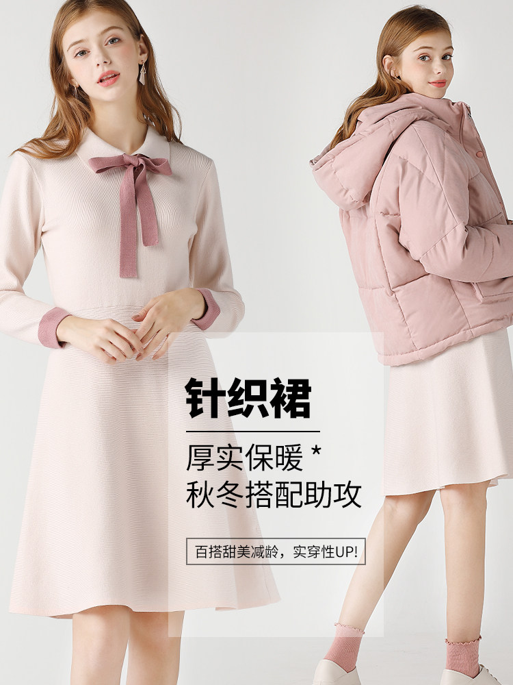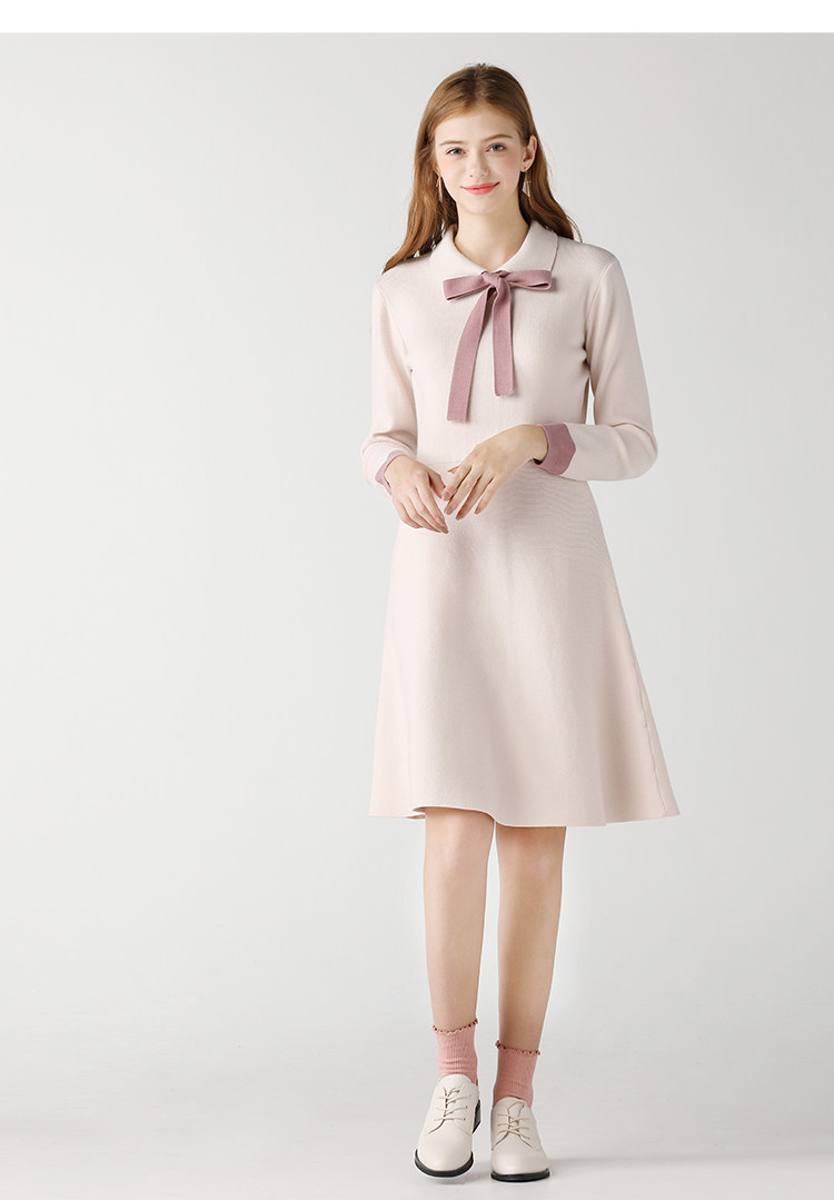 艾米恋 Трикотажное платье, лонгслив, базовое шерстяное платье с бантиком, квадратный вырез, по фигуре, А-силуэт