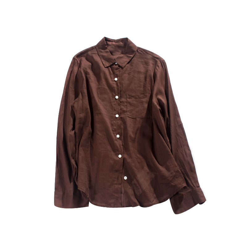 Коричневый освежающий тонкий летний лонгслив, весенняя рубашка, оверсайз
