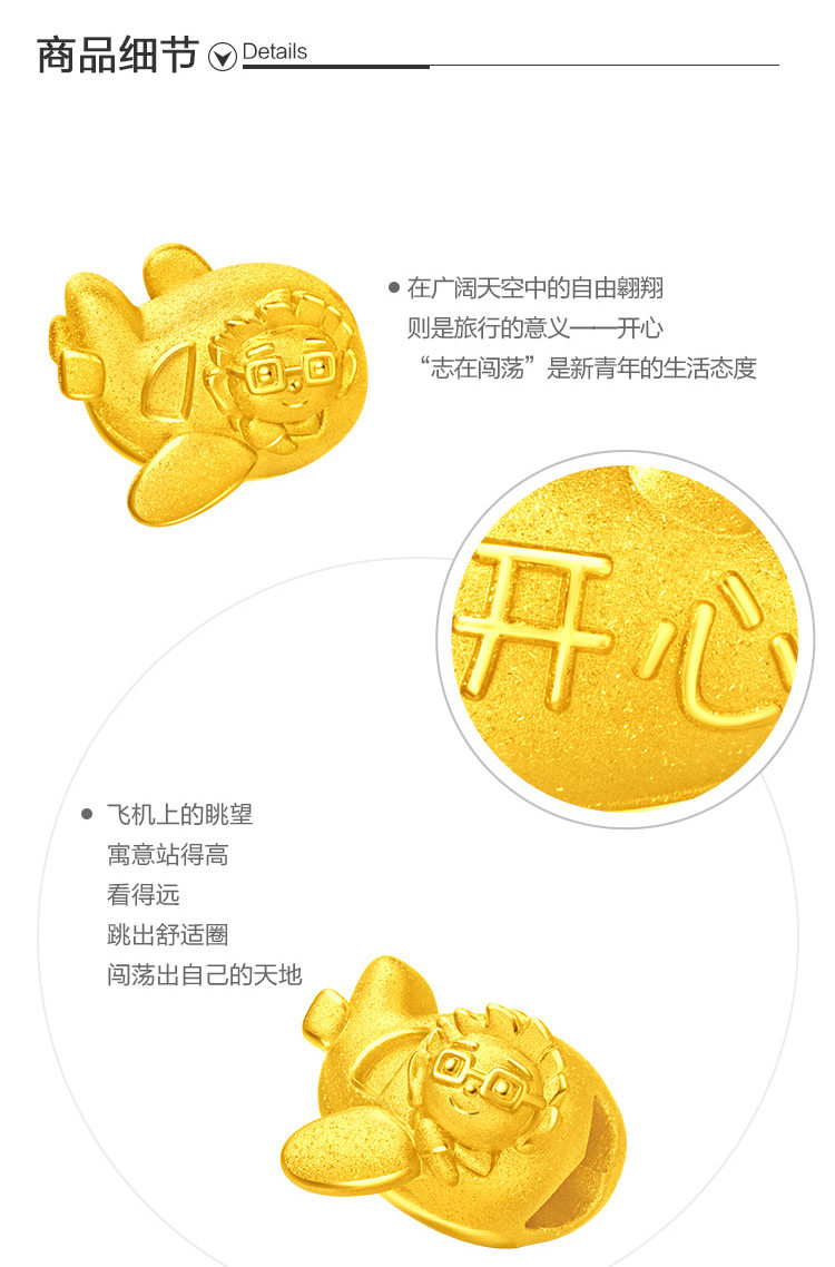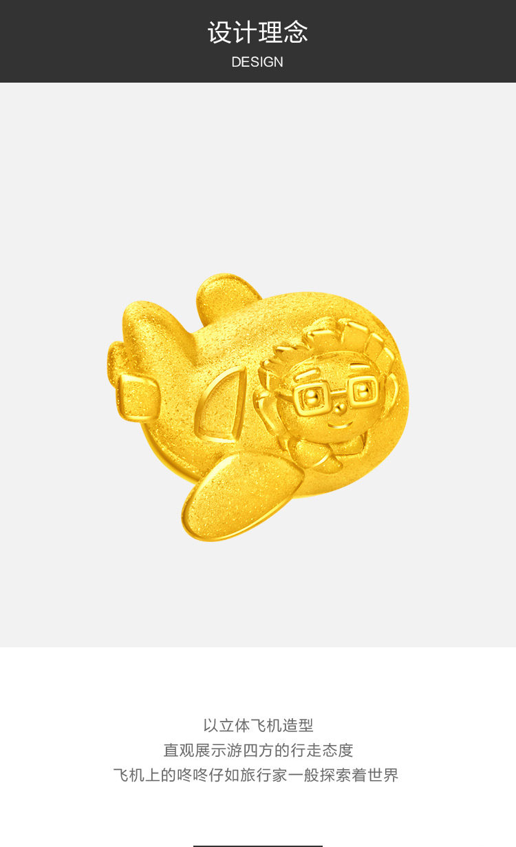 周大福 Самолет, браслет с одной бусиной, золотая подвеска, 3D