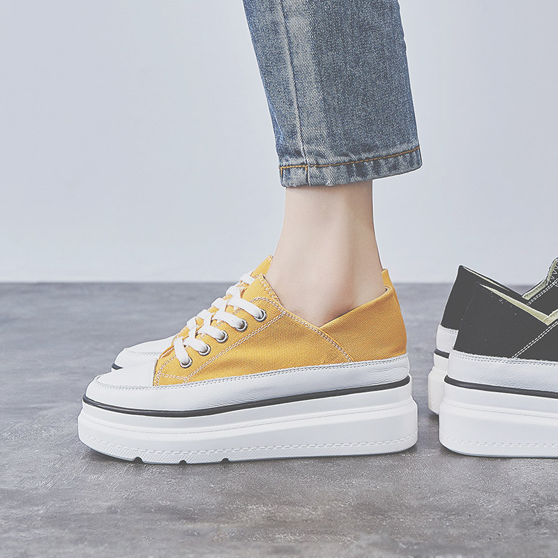 Модные брендовые парусиновые туфли для женщин 2022 года, новая ретро-платформа на толстой подошве, универсальная женская обувь, увеличивающая рост, осенние модные туфли на один шаг