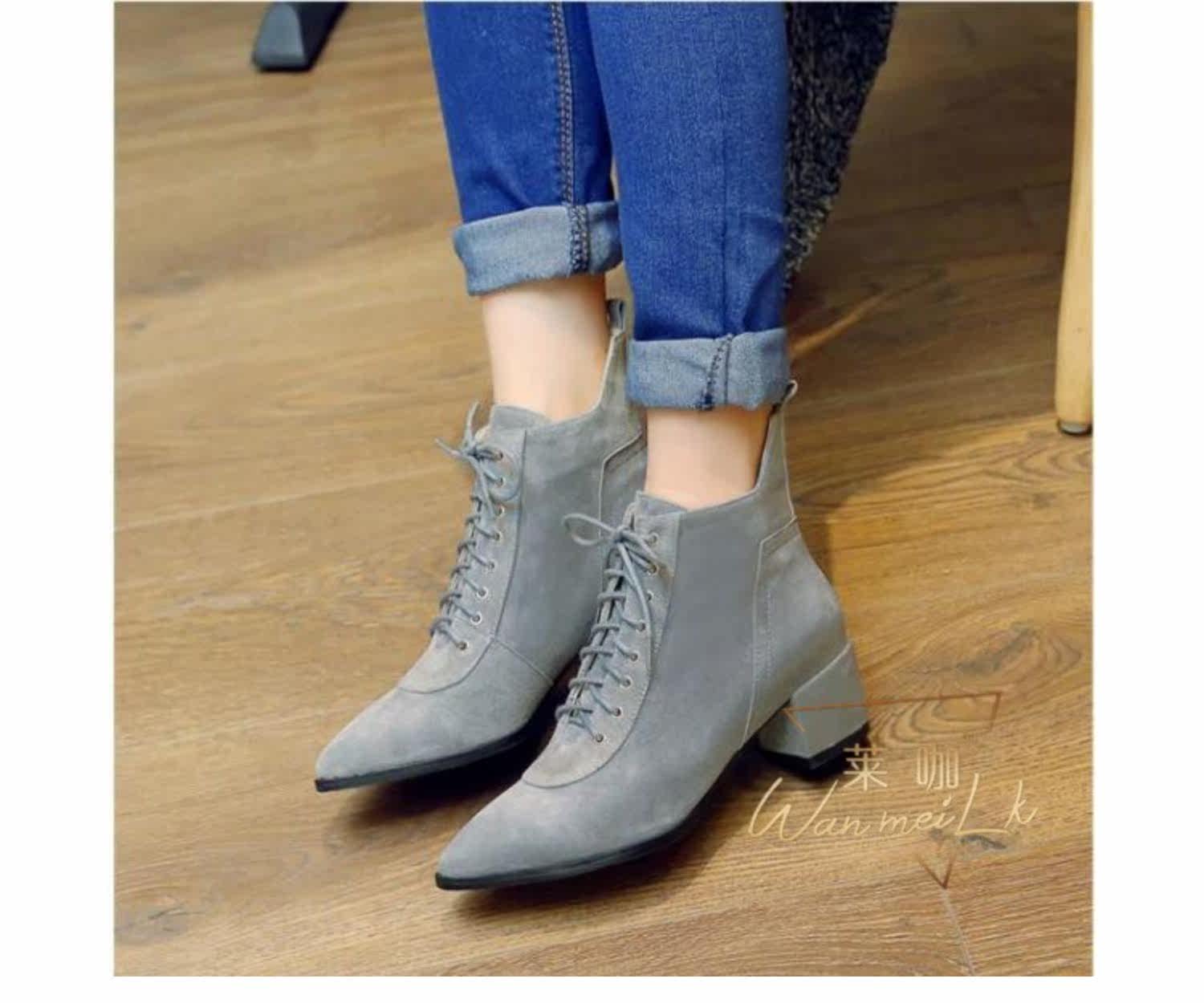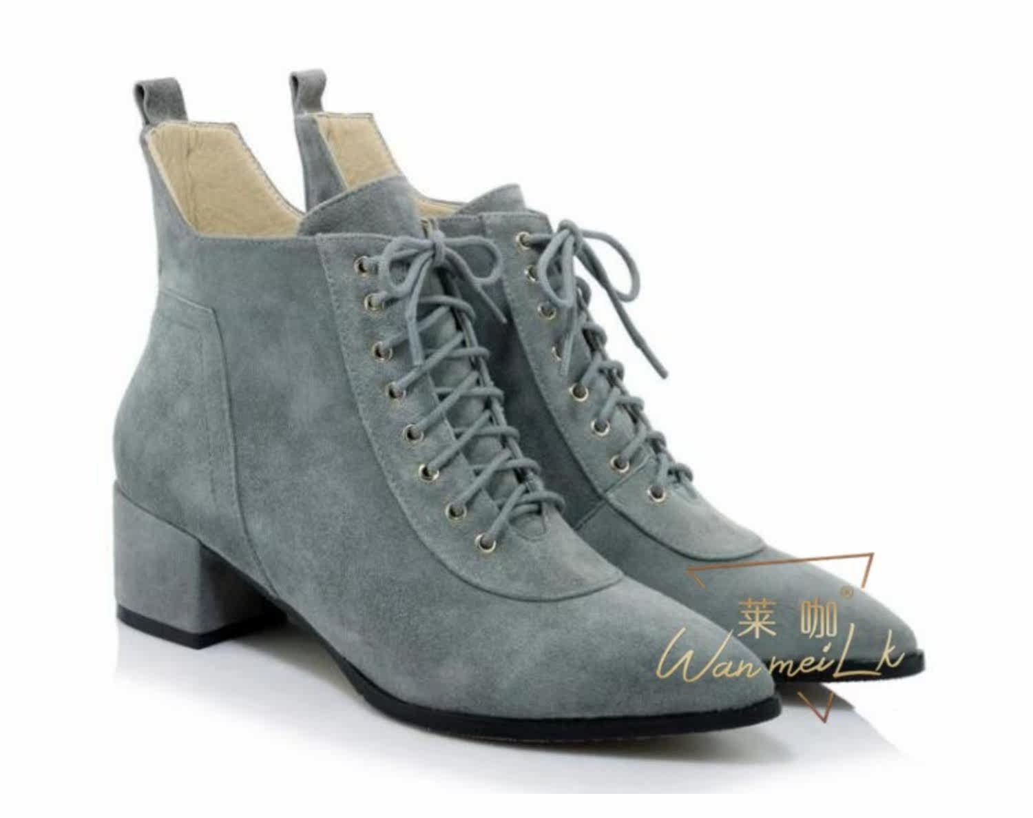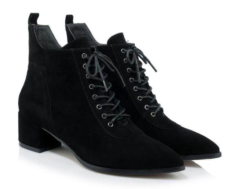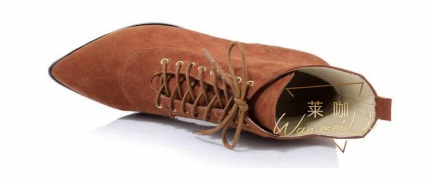 Незаметная внутренняя прибавка к росту 8 см, удобный толстый каблук, классическая шнуровка, модные короткие ботинки с острым носком, женские ботинки Laika 7035k