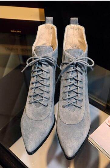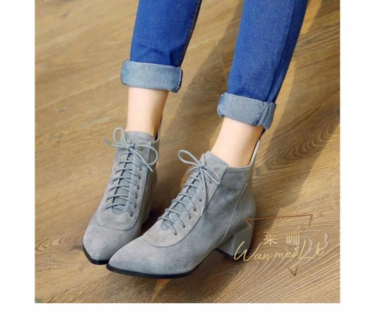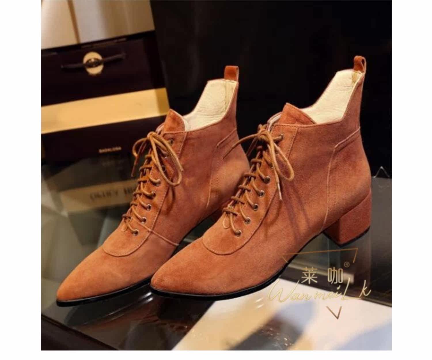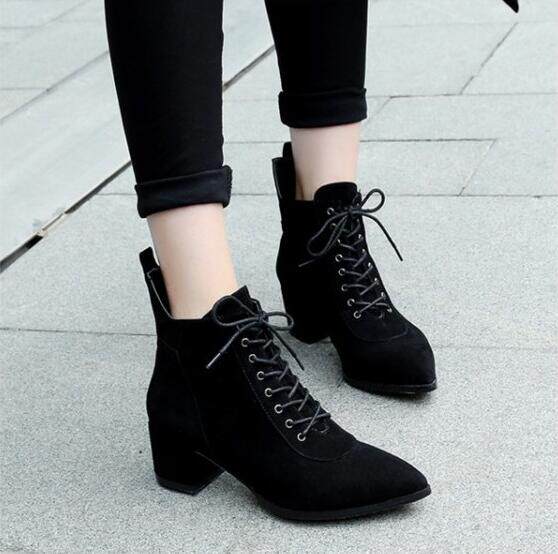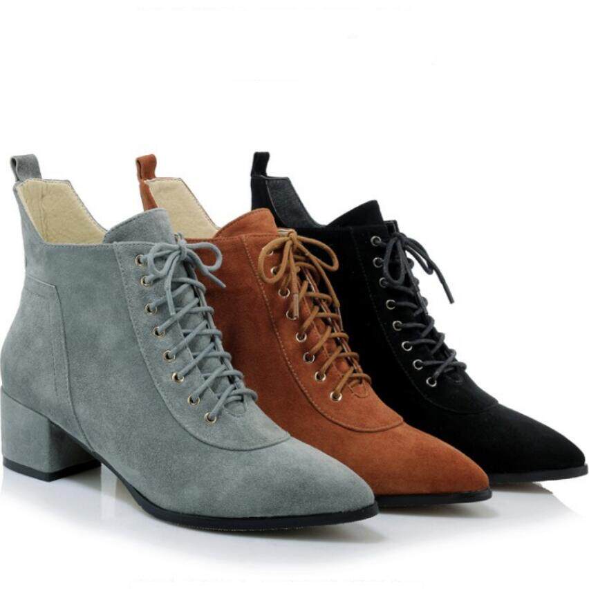 Незаметная внутренняя прибавка к росту 8 см, удобный толстый каблук, классическая шнуровка, модные короткие ботинки с острым носком, женские ботинки Laika 7035k
