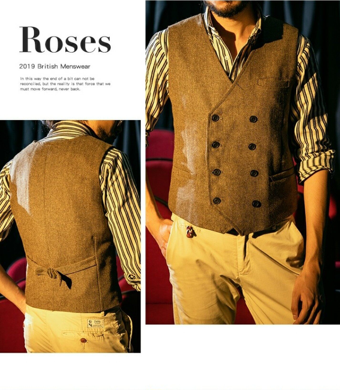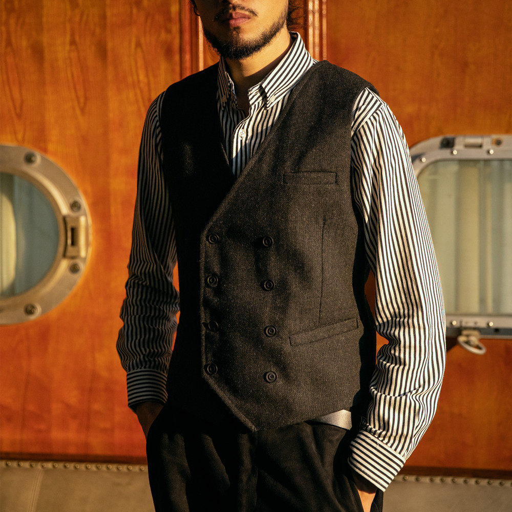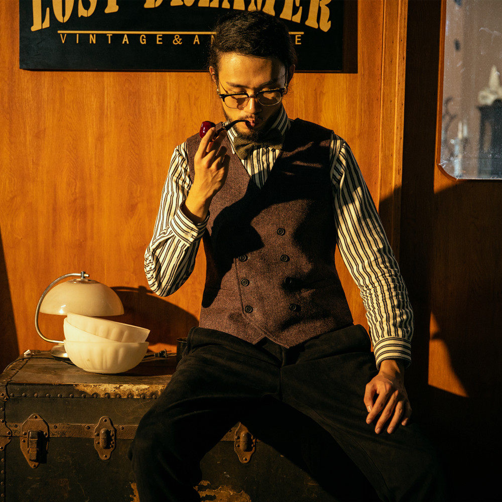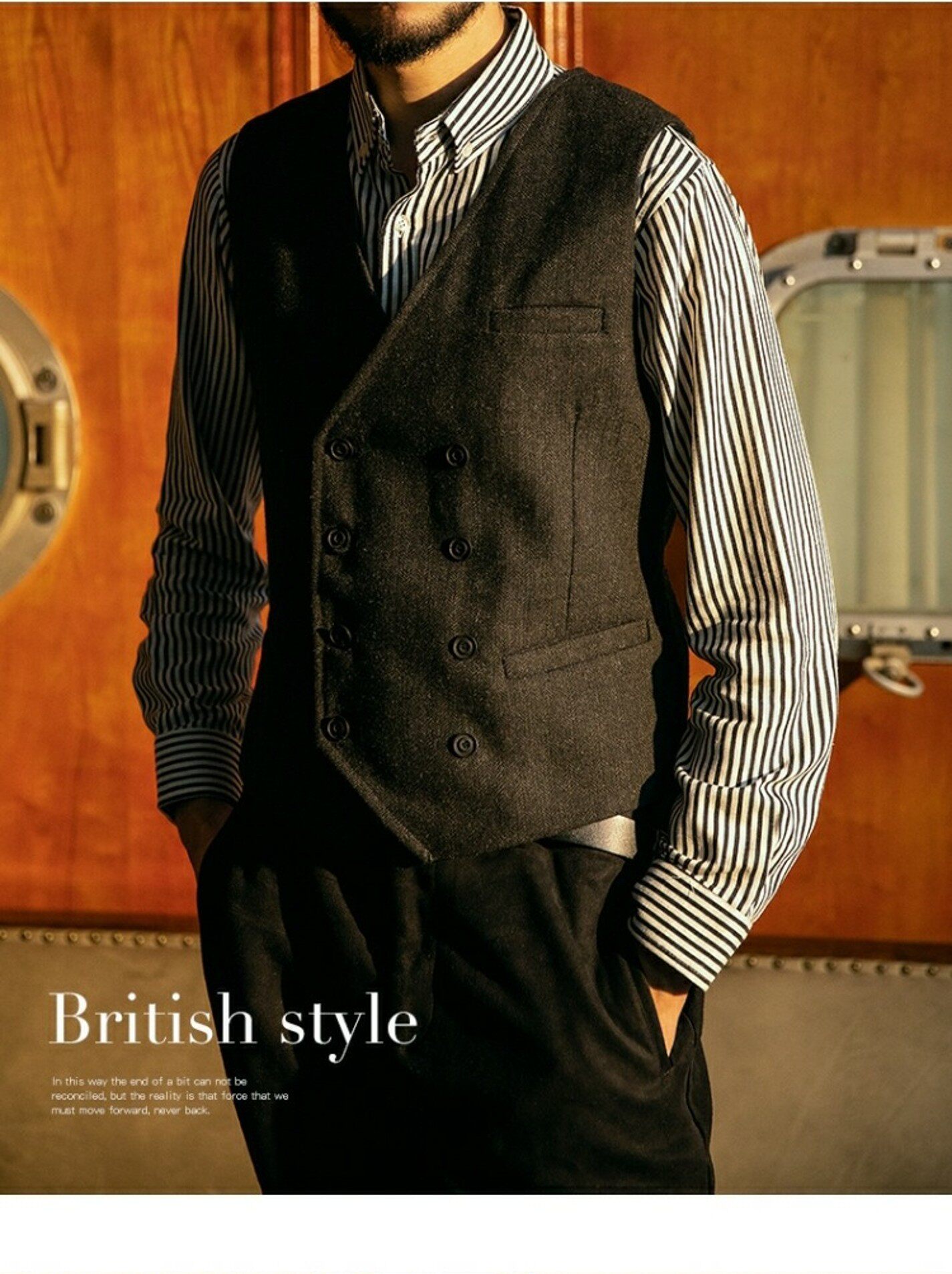 Демисезонный костюм, ретро жилет в английском стиле, двухрядная пони, куртка