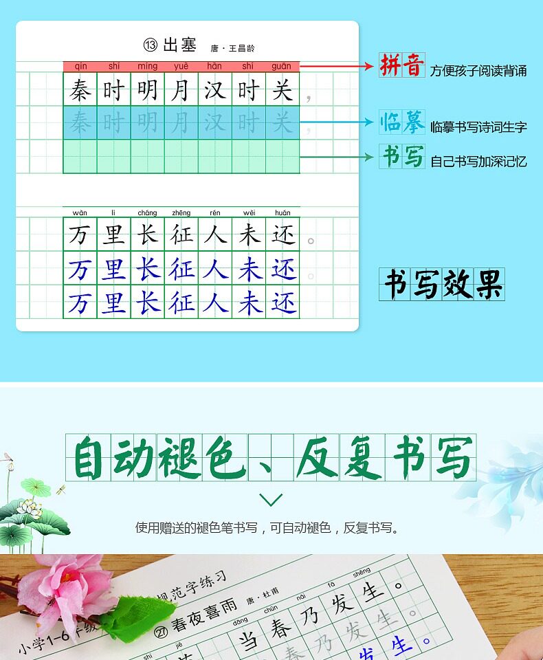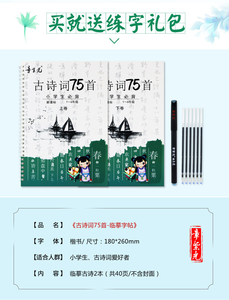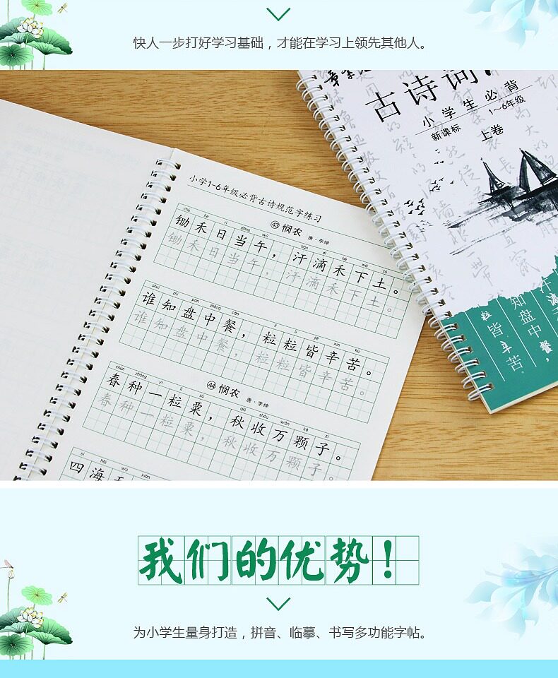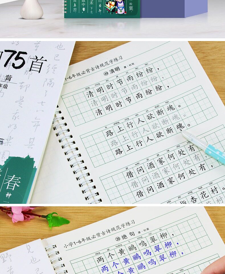 Древняя поэзия для школьников и студентов, детская тетрадь, каллиграфия, Танская поэзия, ручка, подходит для начинающих, 1-6 года