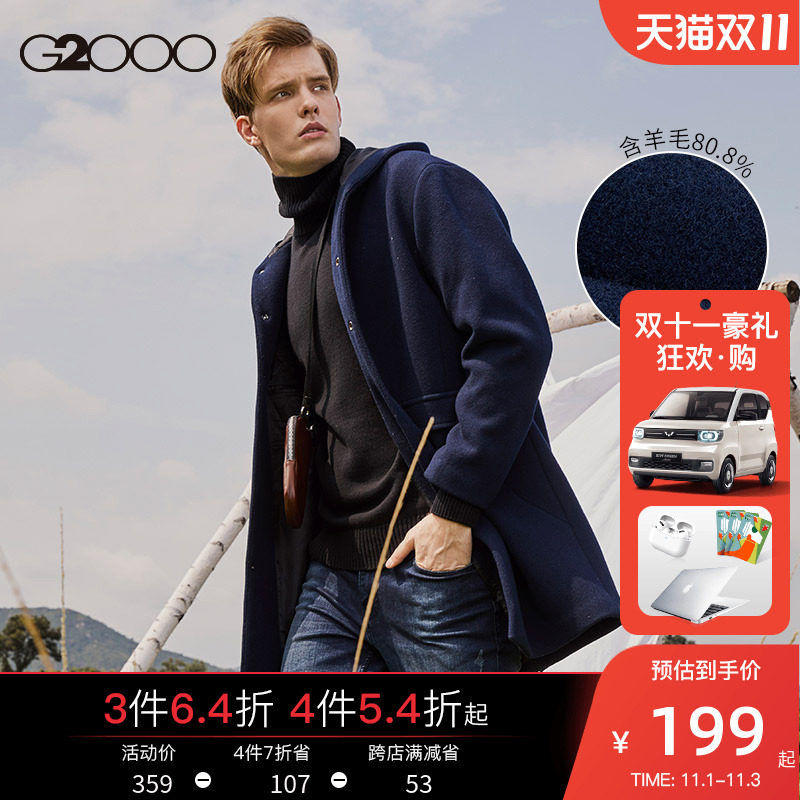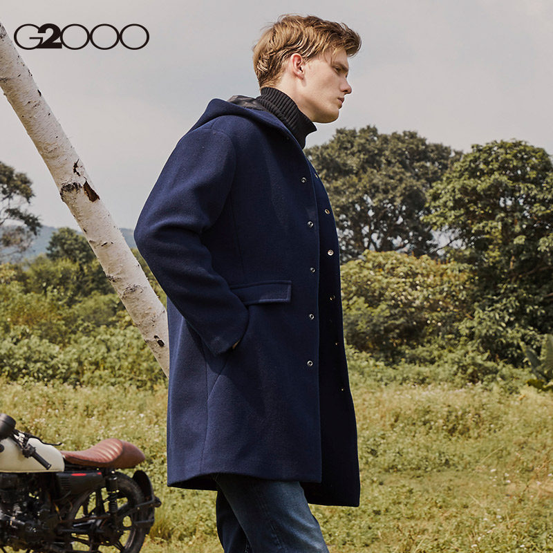 G2000 Длинная трендовая демисезонная удерживающая тепло толстовка с капюшоном для отдыха с капюшоном, шерстяное шерстяное пальто, плащ, куртка, средней длины