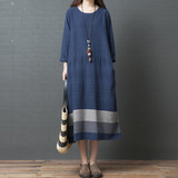 Весеннее осеннее ретро платье, этнический лонгслив, длинная юбка для отдыха, из хлопка и льна, большой размер, этнический стиль, свободный крой, длина макси