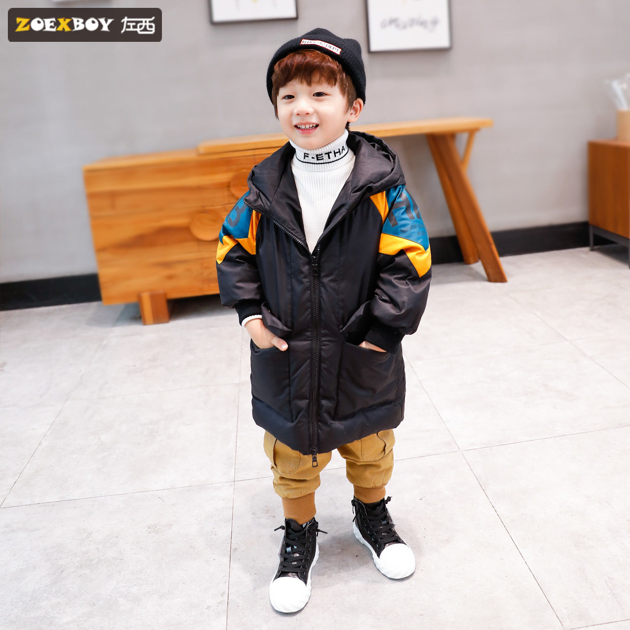 左西 Детский пуховик, бархатная толстовка с капюшоном для мальчиков, шапка, куртка, утиный пух, в западном стиле, 2019