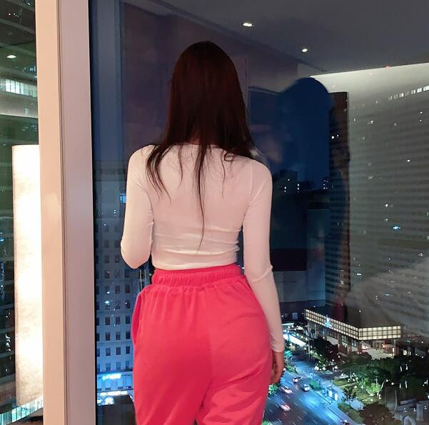 Осенний сексуальный лонгслив, высокая талия, в обтяжку