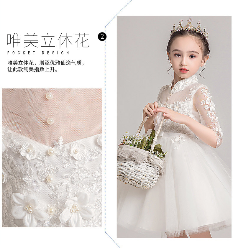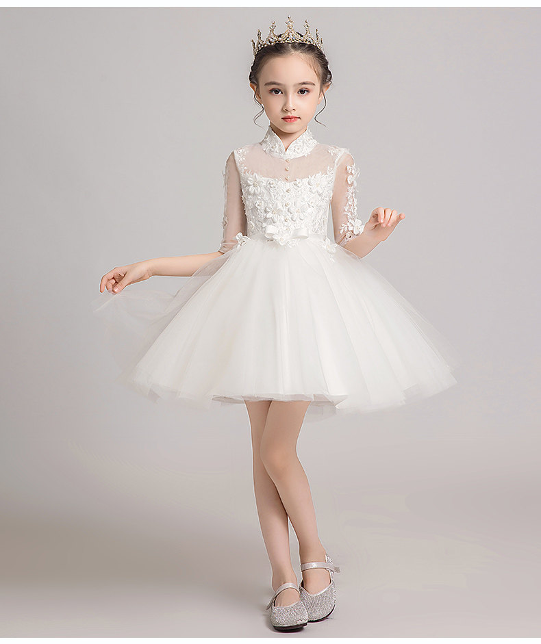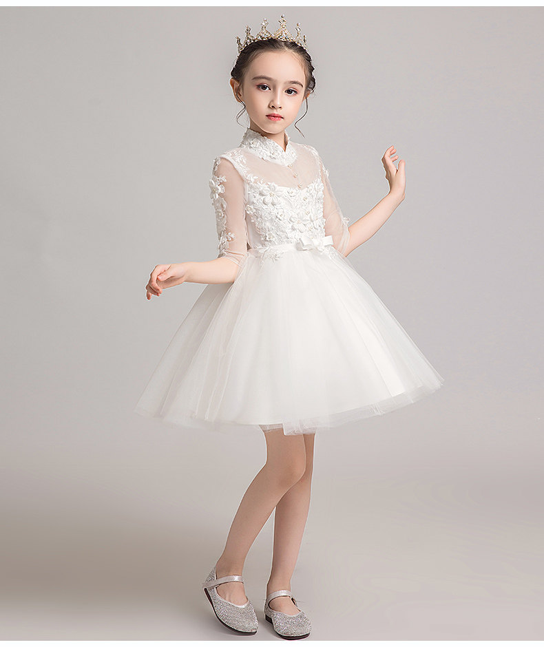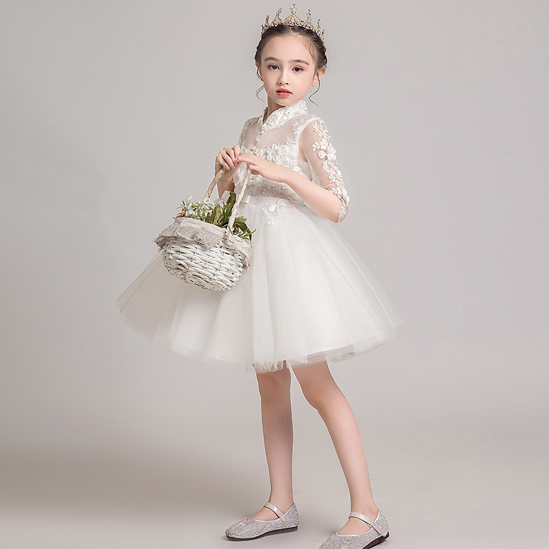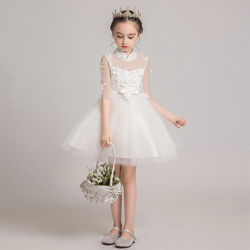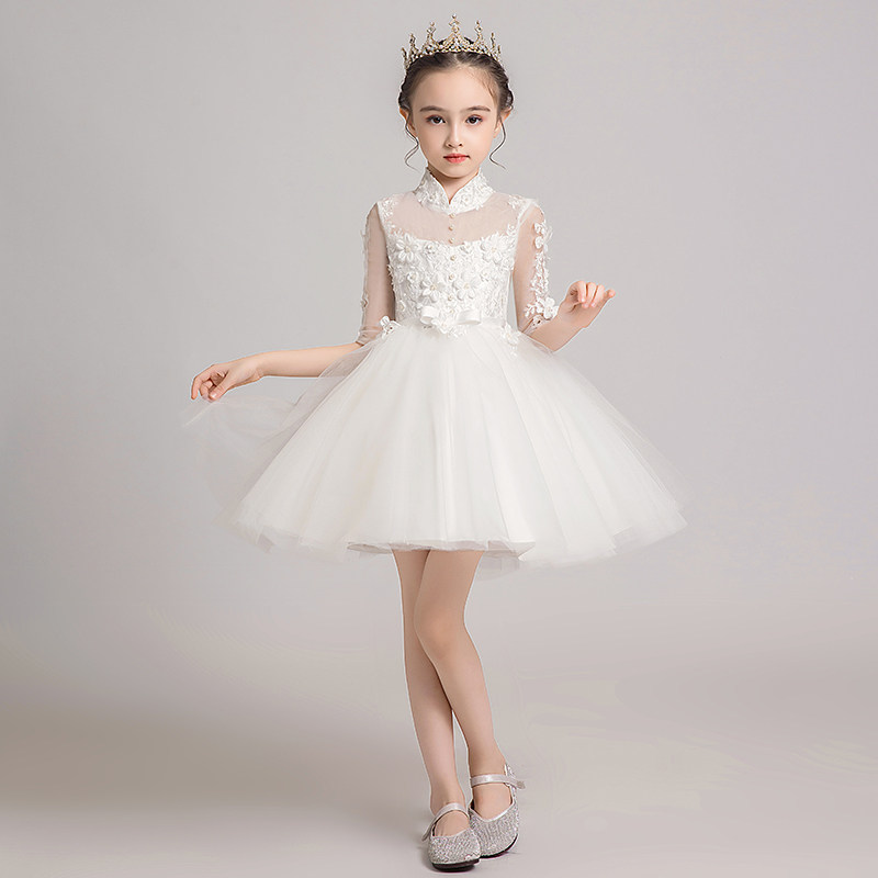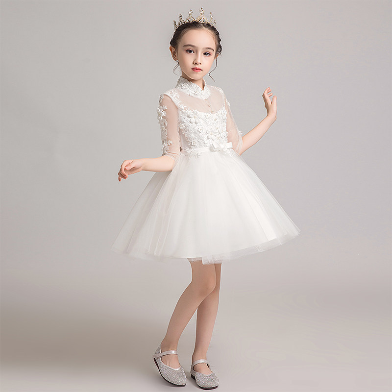 Детское белое платье девочки цветочницы, наряд маленькой принцессы, пианино, наряд для музыкальных выступлений, костюм, в западном стиле