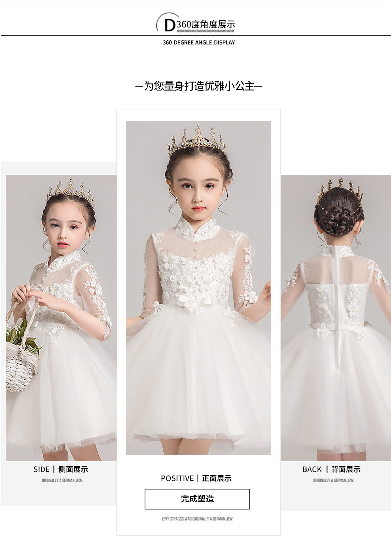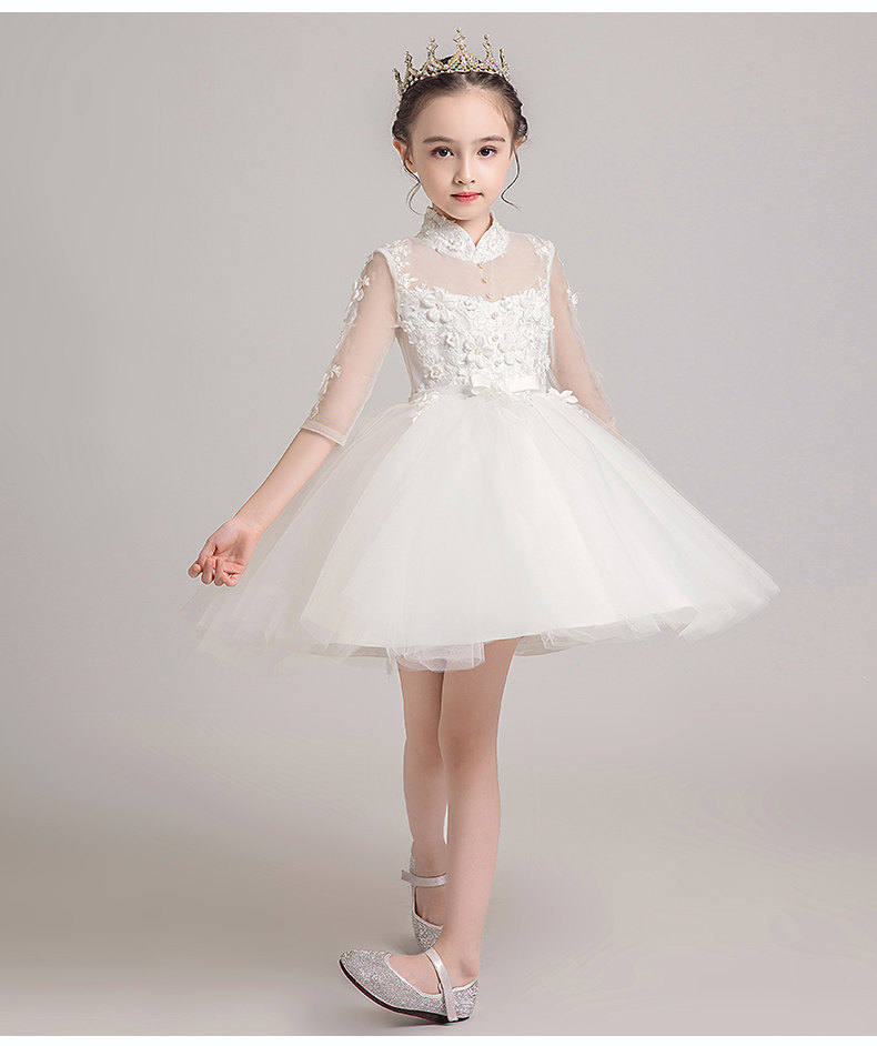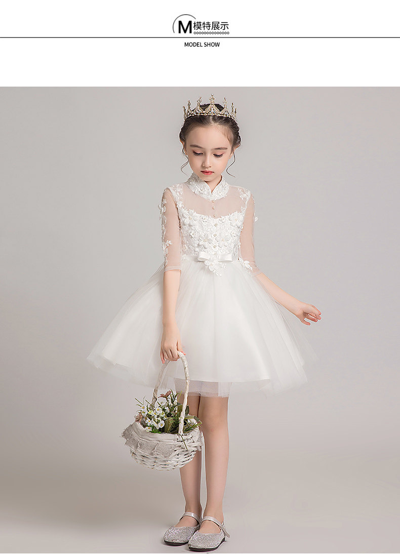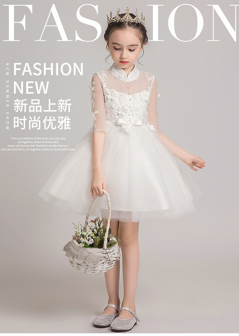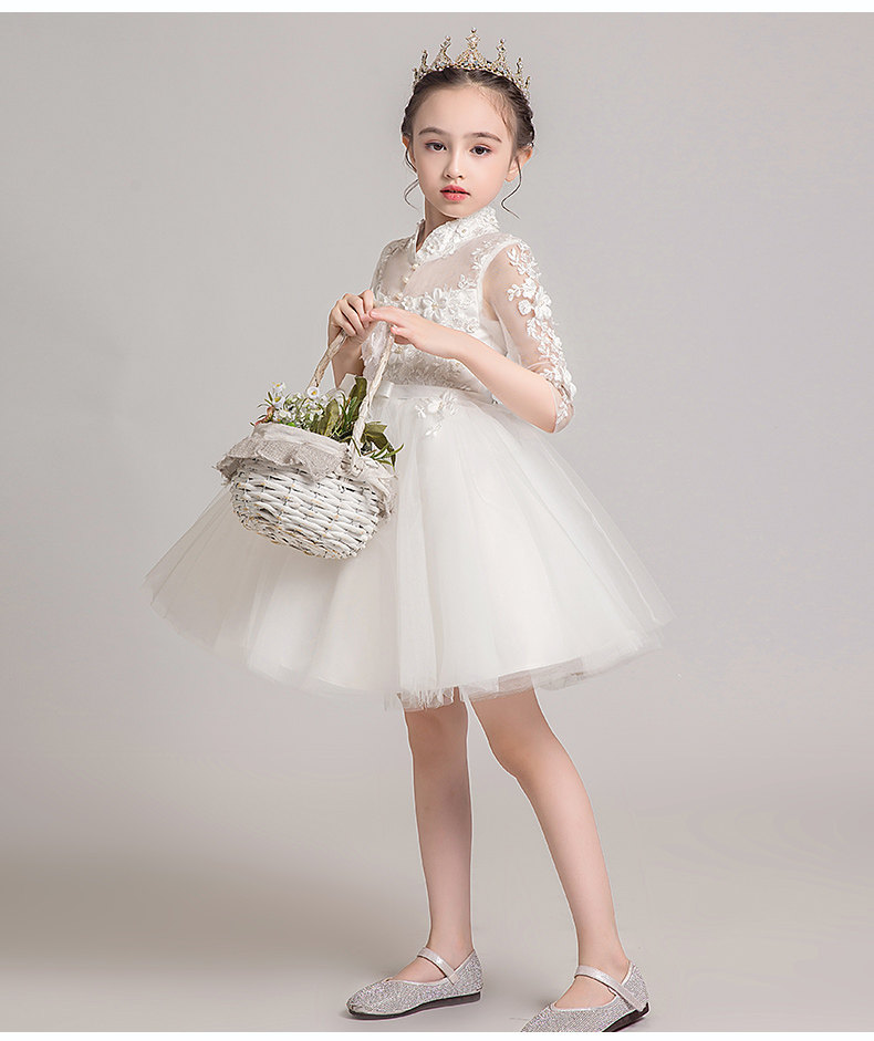 Детское белое платье девочки цветочницы, наряд маленькой принцессы, пианино, наряд для музыкальных выступлений, костюм, в западном стиле
