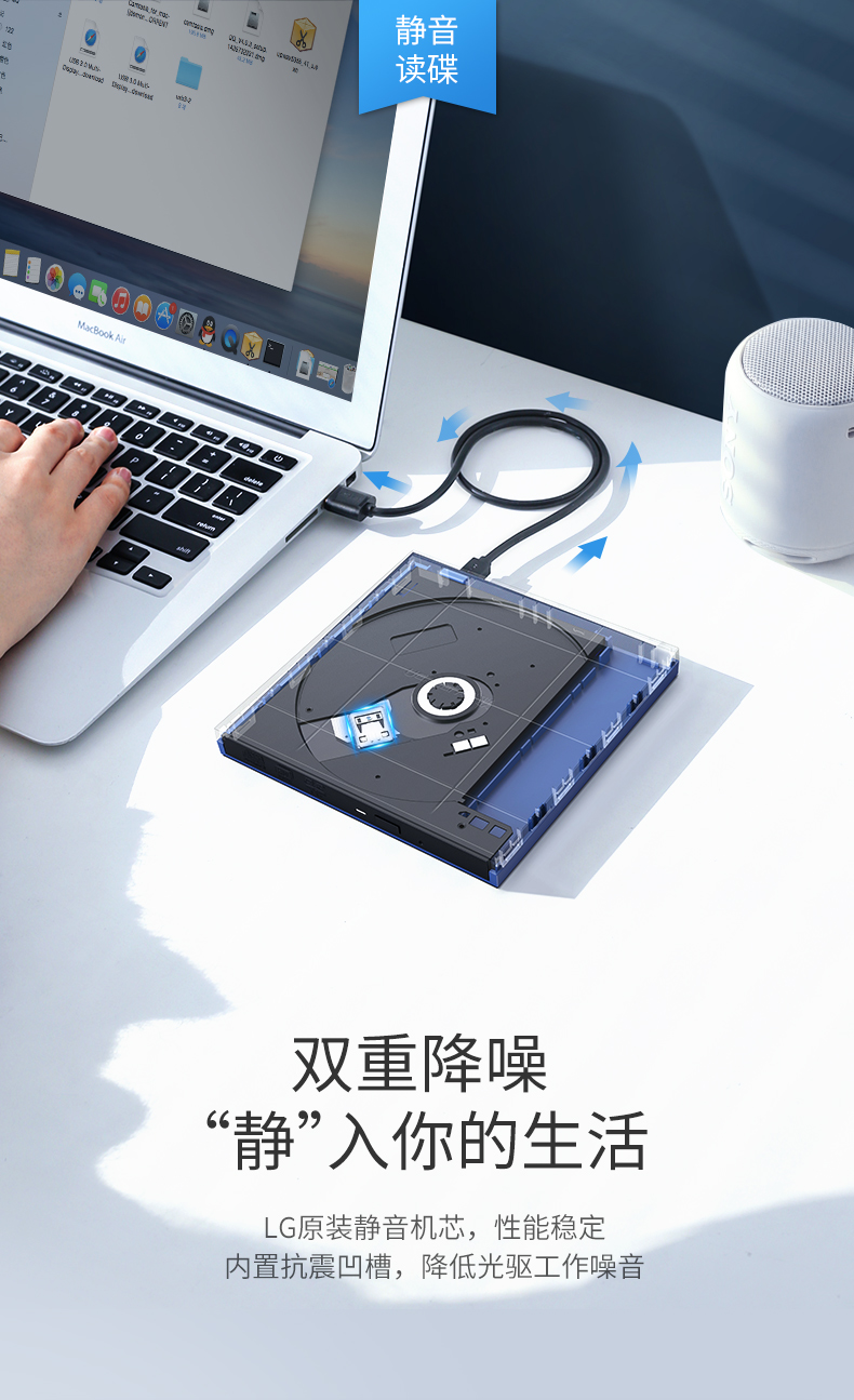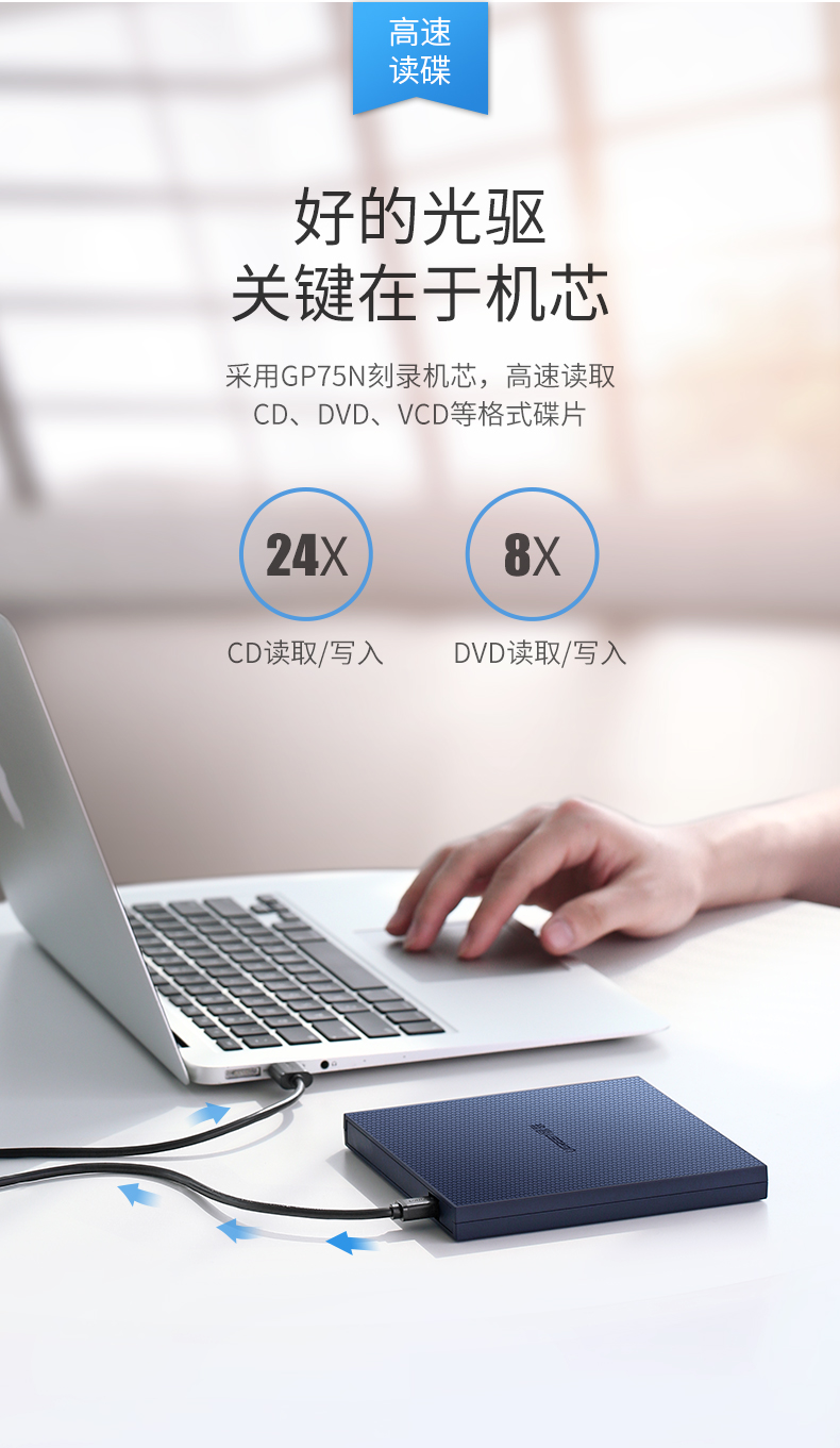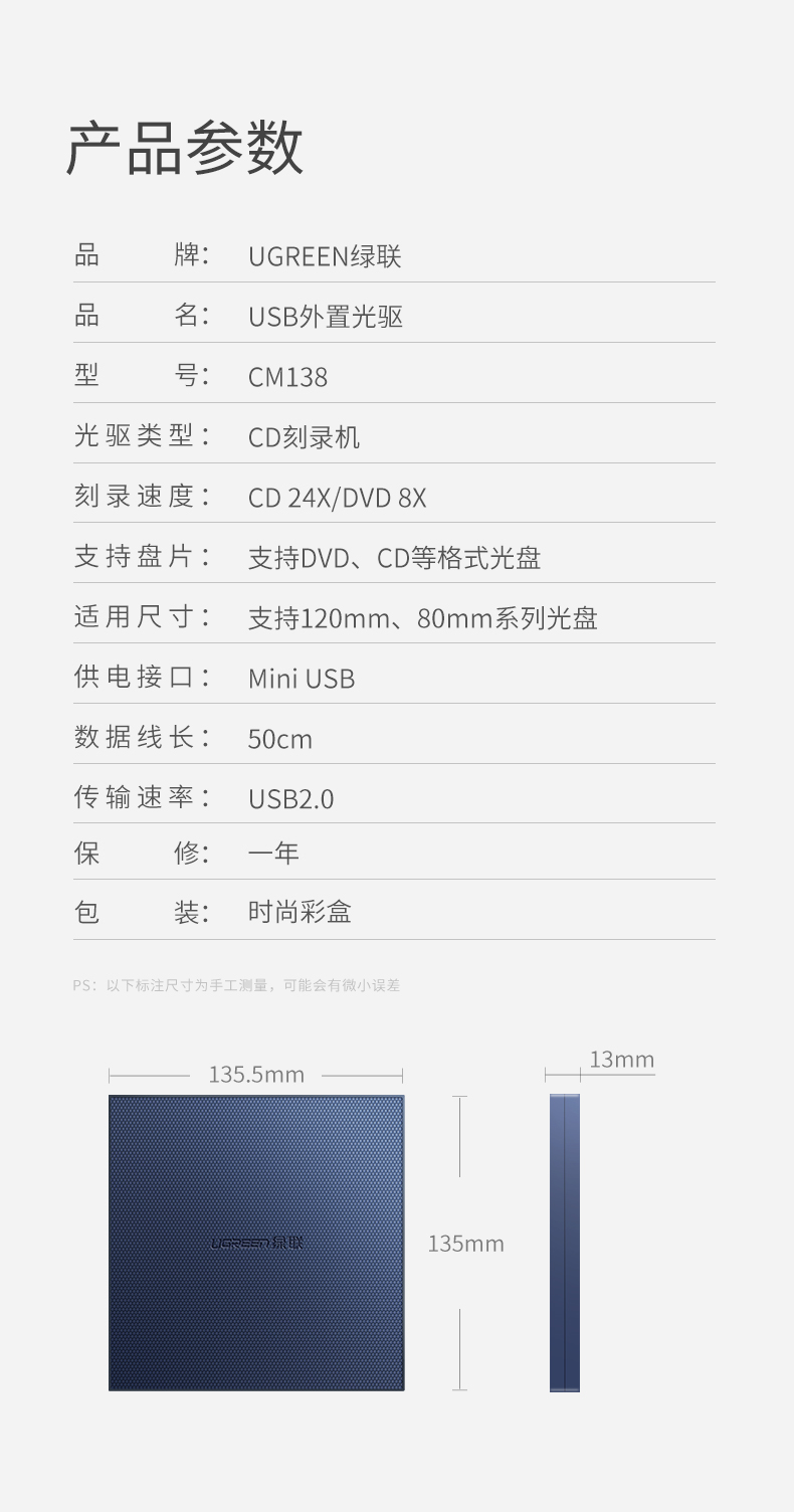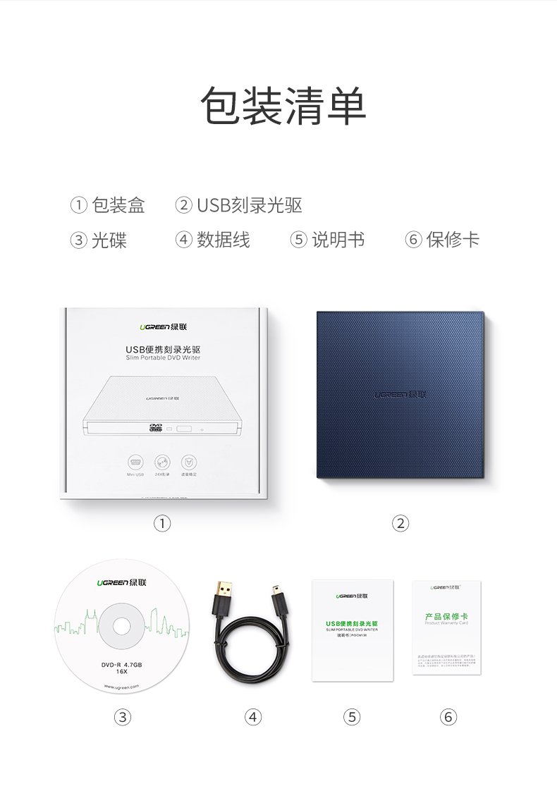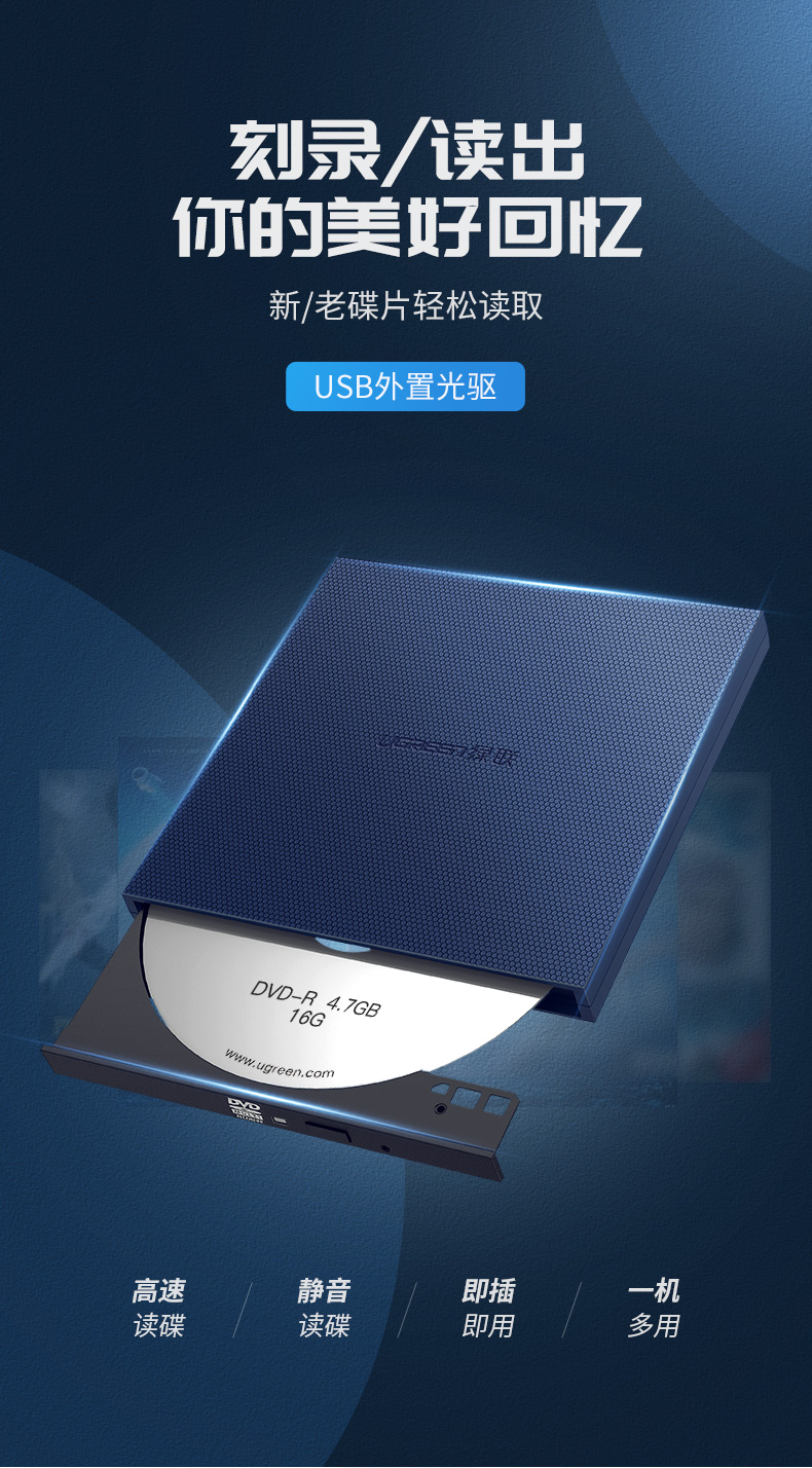 Ugreen Green Union 40576 USB Внешний оптический драйвер мобильный портативный портативный высокоскоростной CD CD Desk CM138