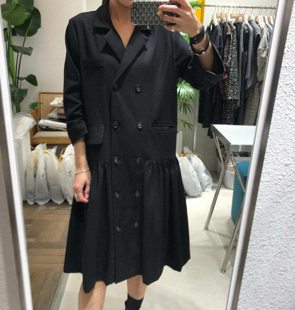 Черный осенний пиджак классического кроя, юбка в складку, 2020, в корейском стиле, популярно в интернете