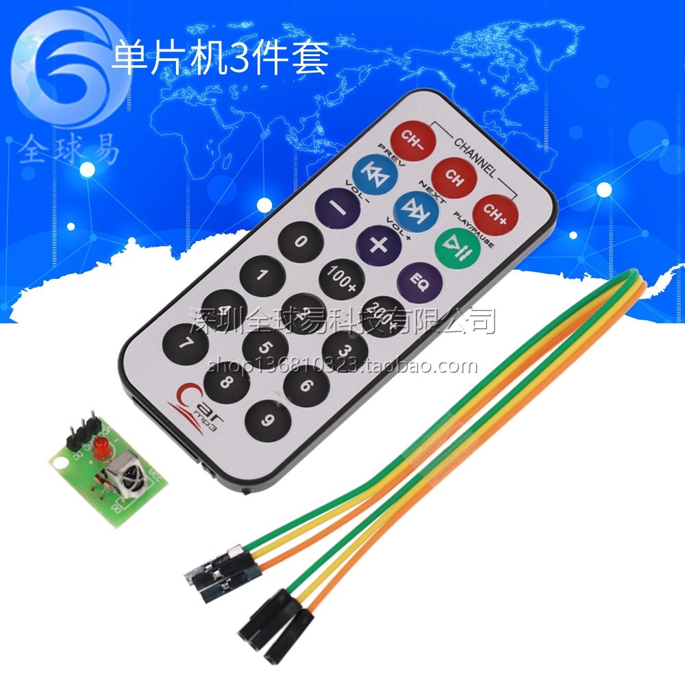 3 -ceece Set, одно -гликовая микрокомпьютерея модуль дистанционного управления+приемная головка HX1838+NEC Кодирующий инфракрасный дистанционное управление