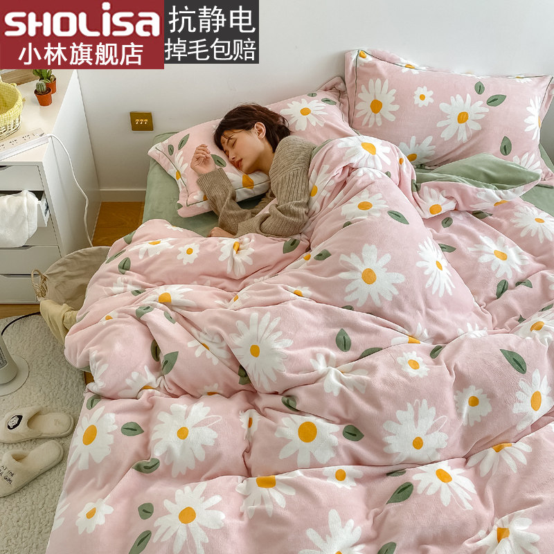 Зимний удерживающий тепло комплект, коралловый двусторонний пододеяльник, фланелевое покрывало, увеличенная толщина, 4 предмета
