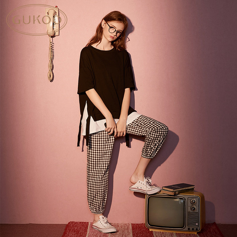 Gukoo/果壳 Осенние хлопковые комфортные штаны для отдыха, пижама