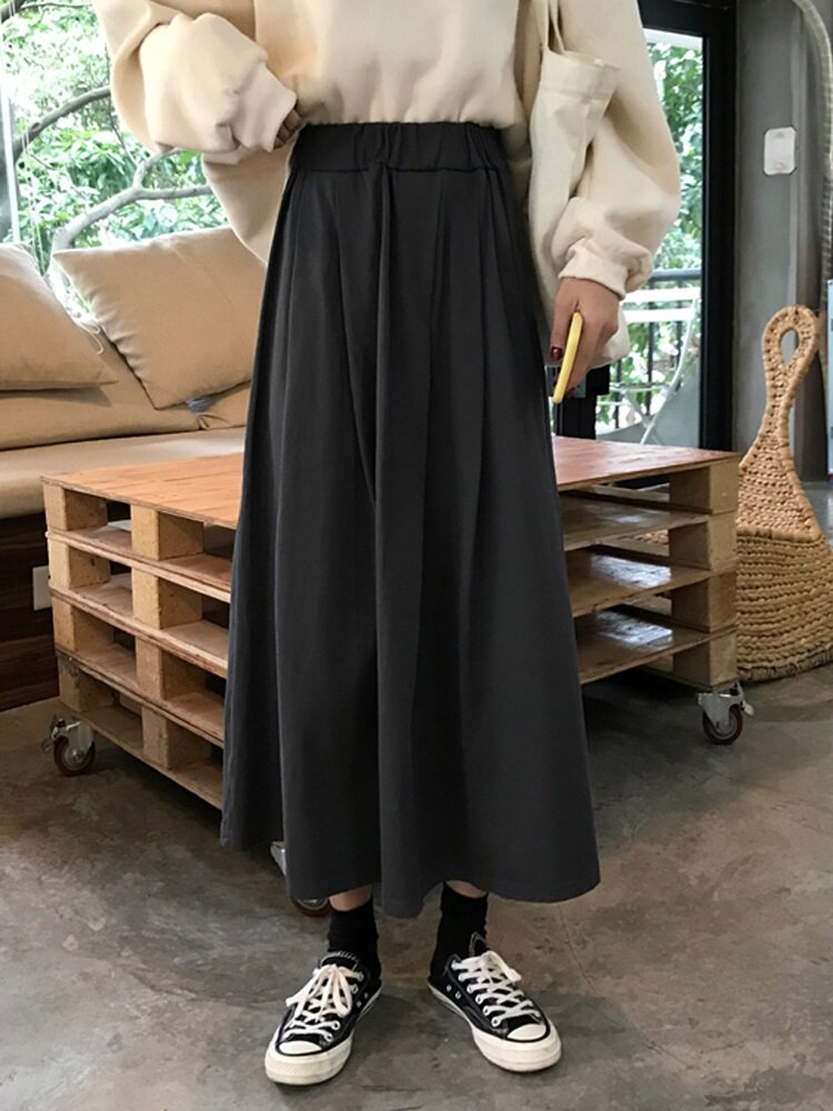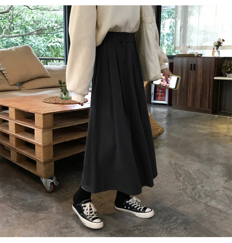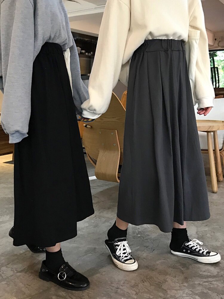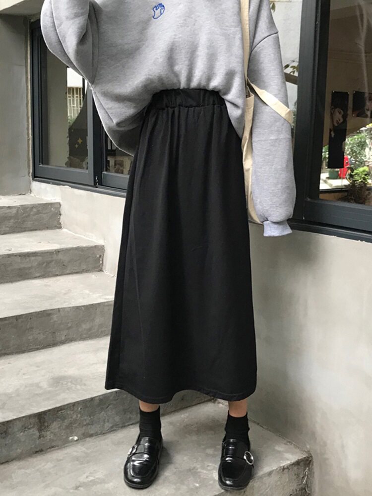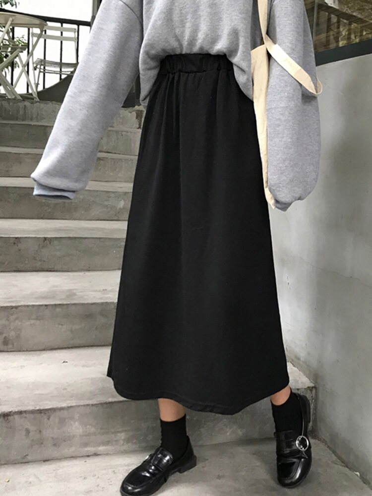Черная длинная длинная юбка, большой размер, средней длины, осенняя