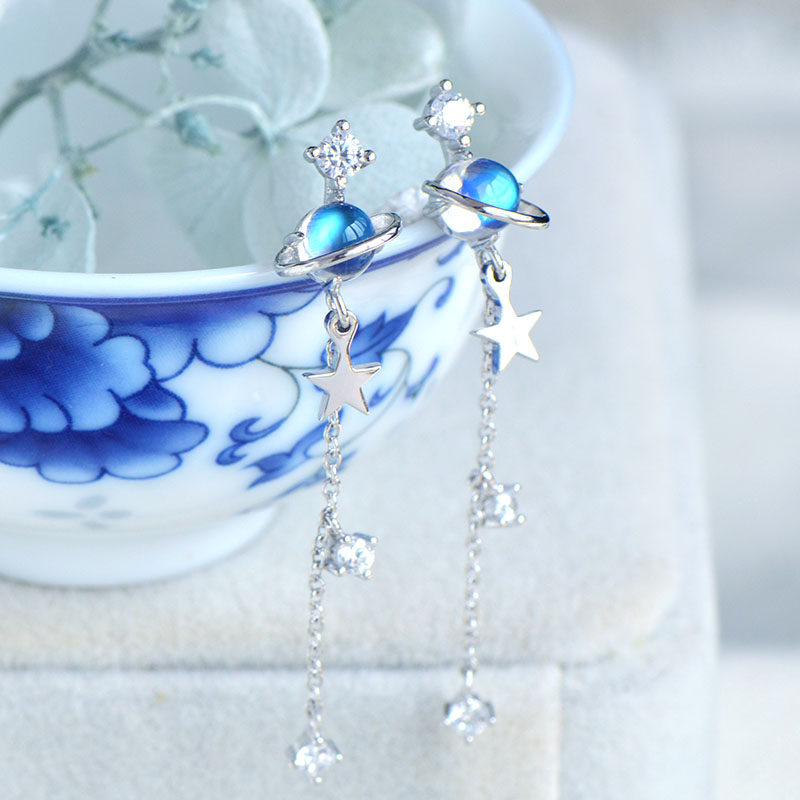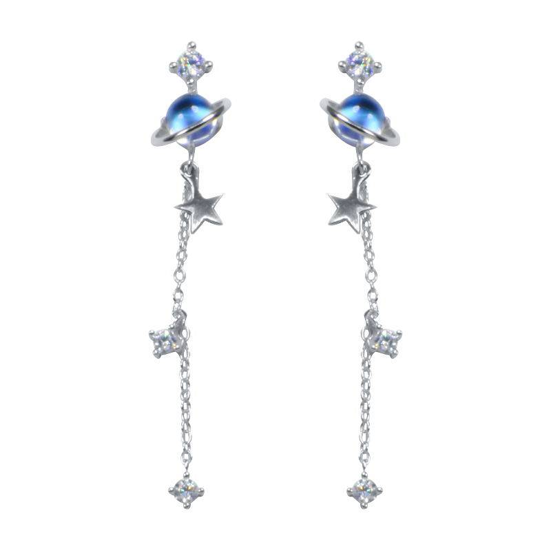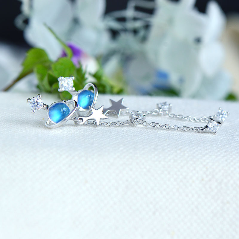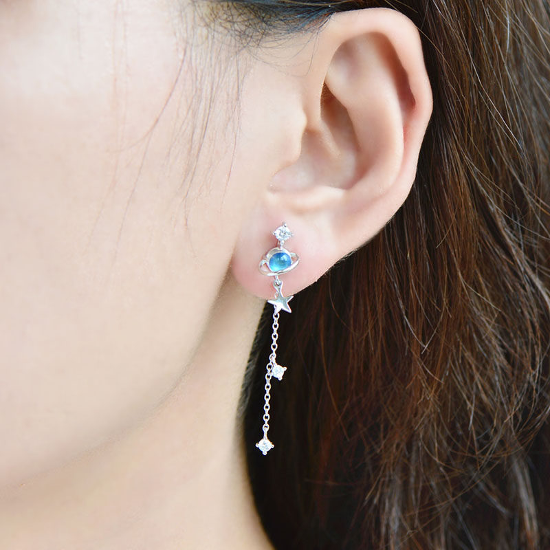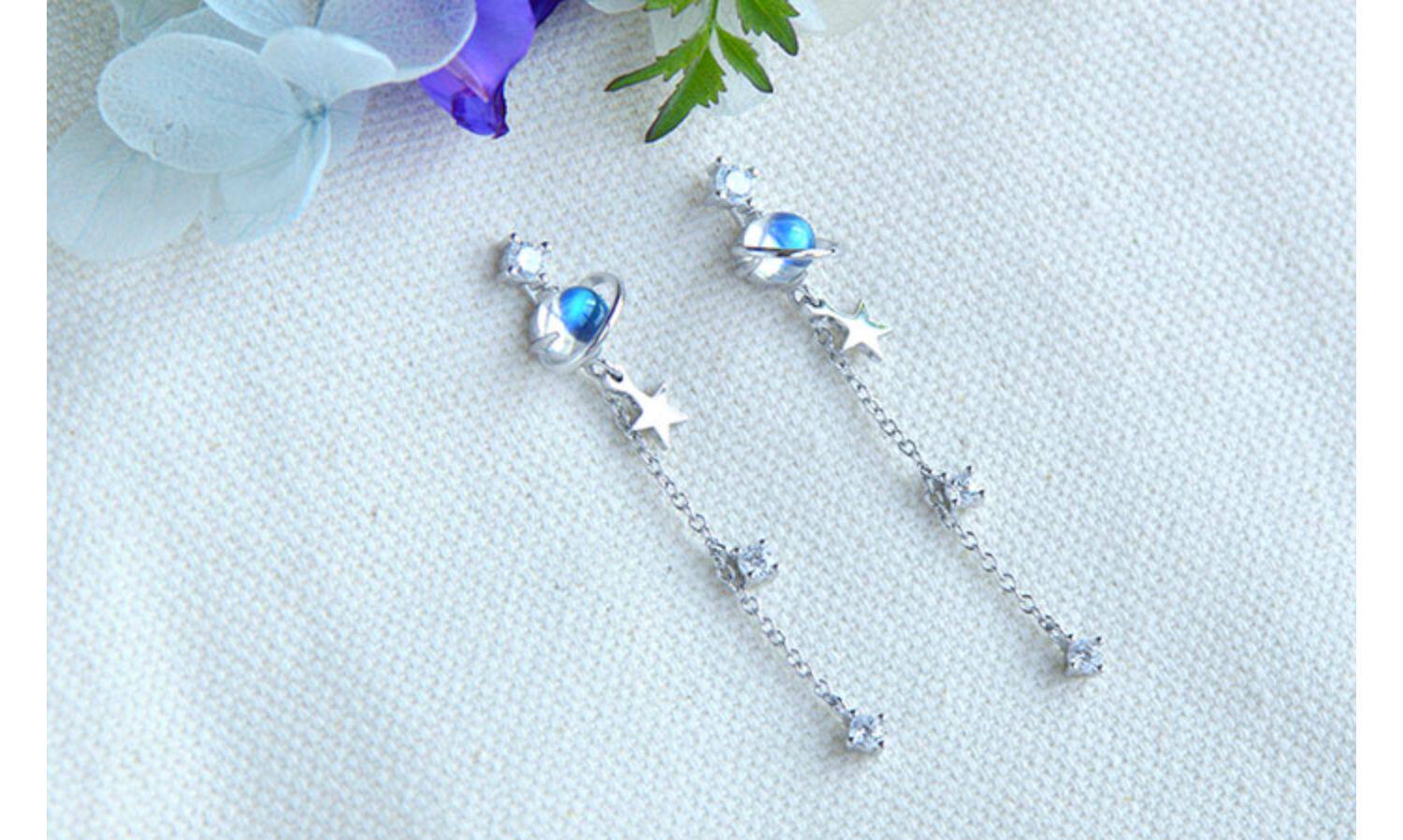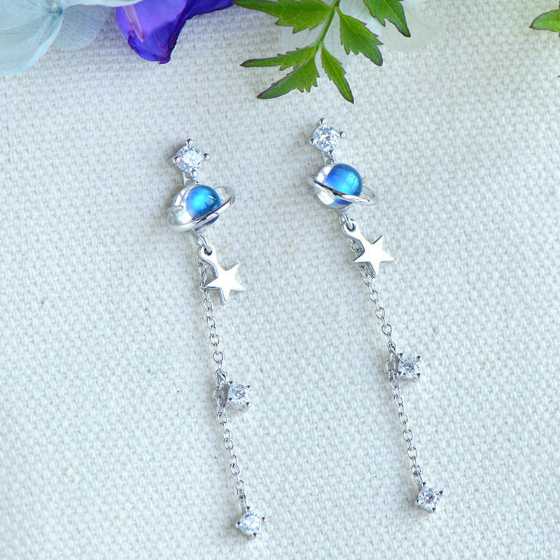 Натуральные небольшие дизайнерские милые брендовые длинные серьги, лунный камень, серебро 925 пробы, имитация льда