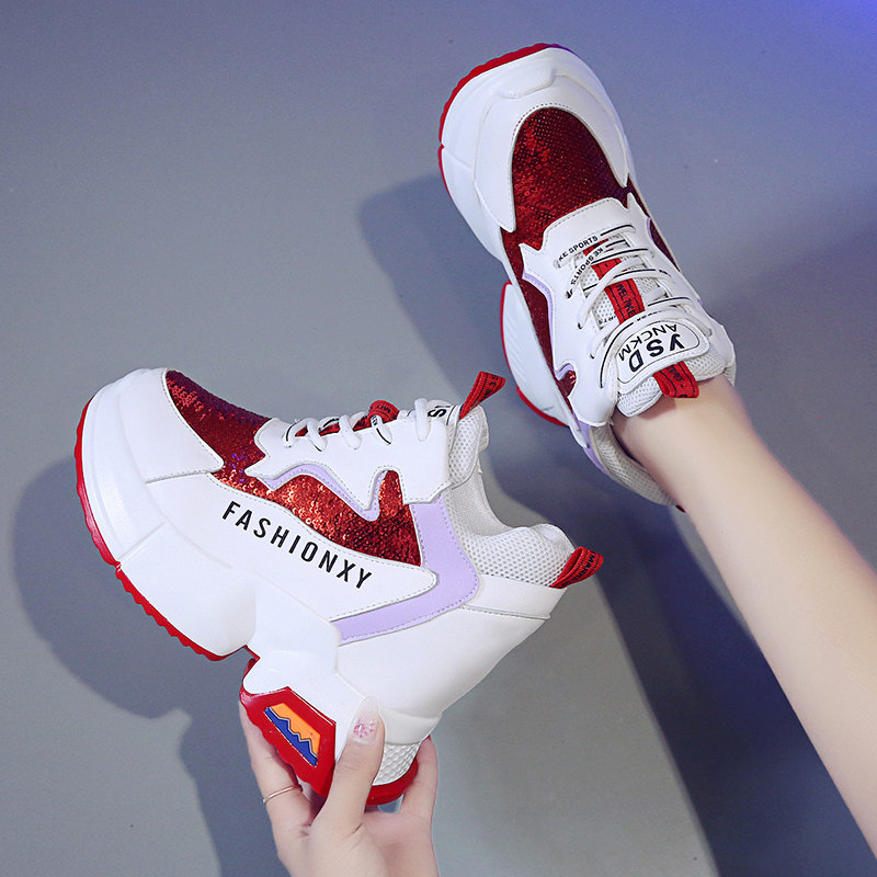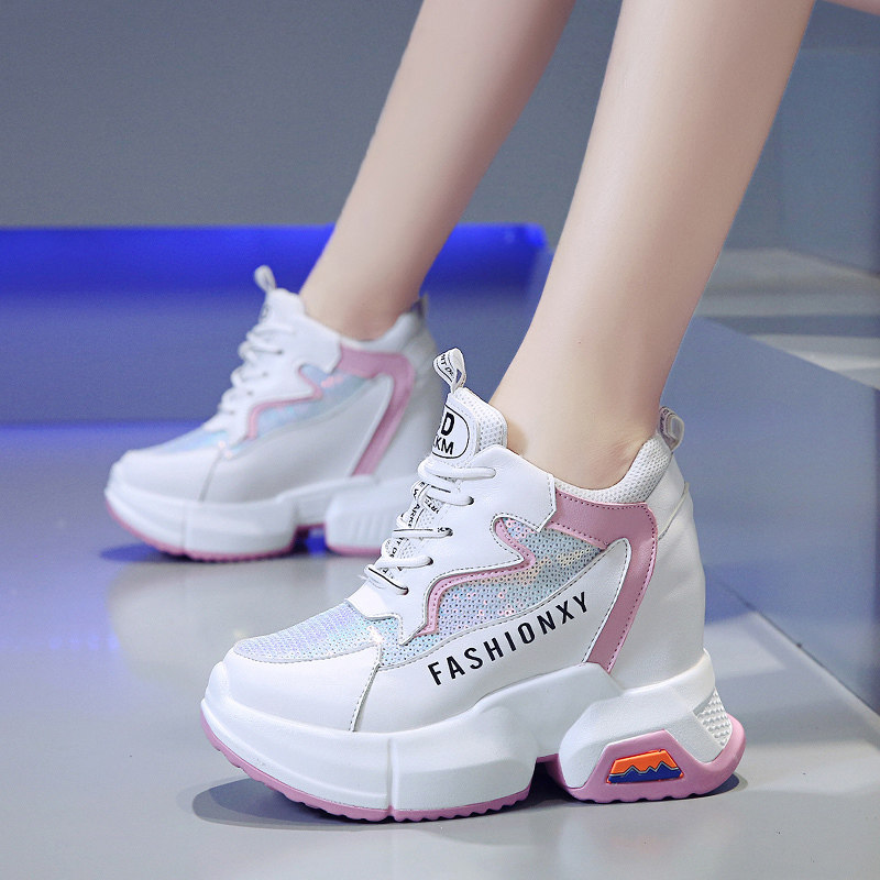 Высокая дышащая универсальная белая обувь на платформе для отдыха, 2019, осенняя