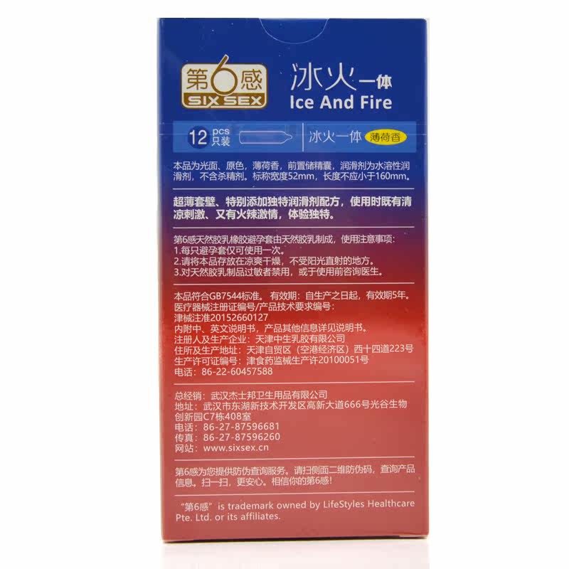 第6感 Двенадцать натуральных резиновых резиновых презервативов (один -In -One) (лед и огонь) (мятный ладан)
