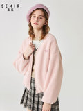 Semir, короткая бархатная зимняя розовая демисезонная флисовая куртка, свободный крой, V-образный вырез