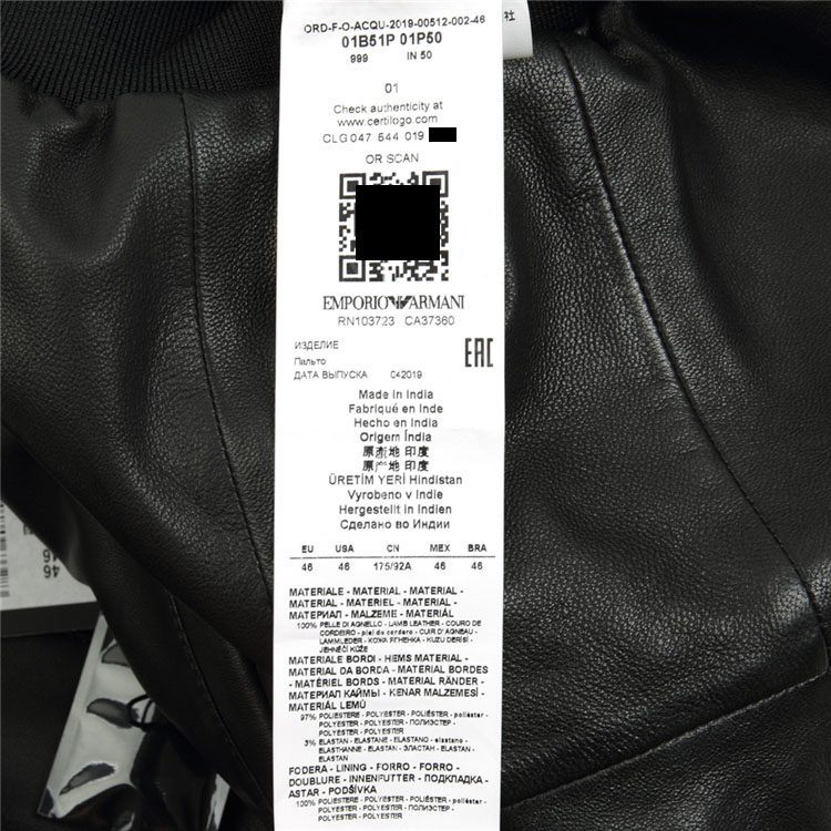 Emporio Armani Ea Amani мужская кожаная кожаная куртка 01B51P 01P50