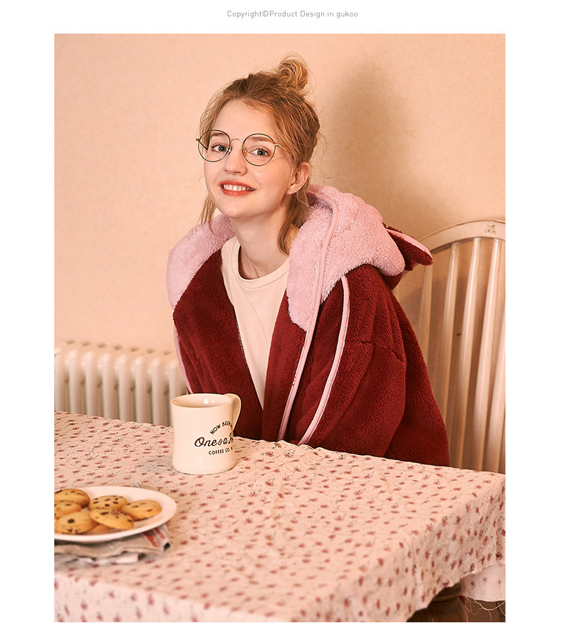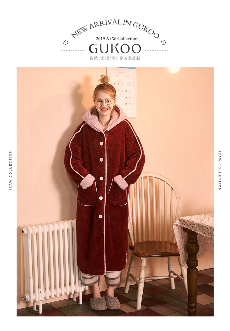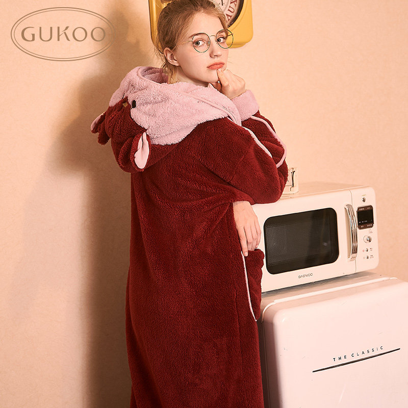 Gukoo/果壳 Демисезонная коралловая бархатная пижама, юбка, милый банный халат