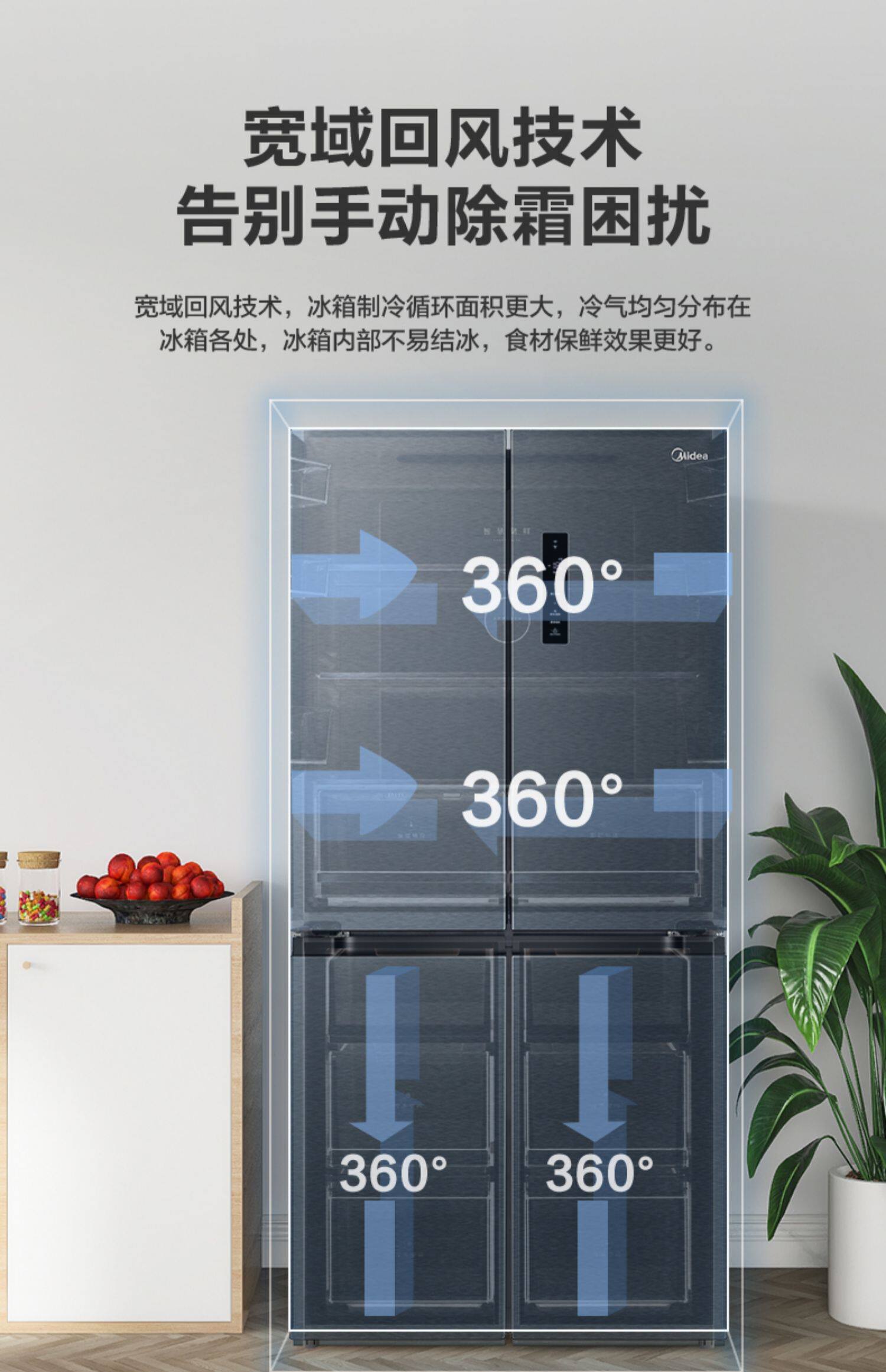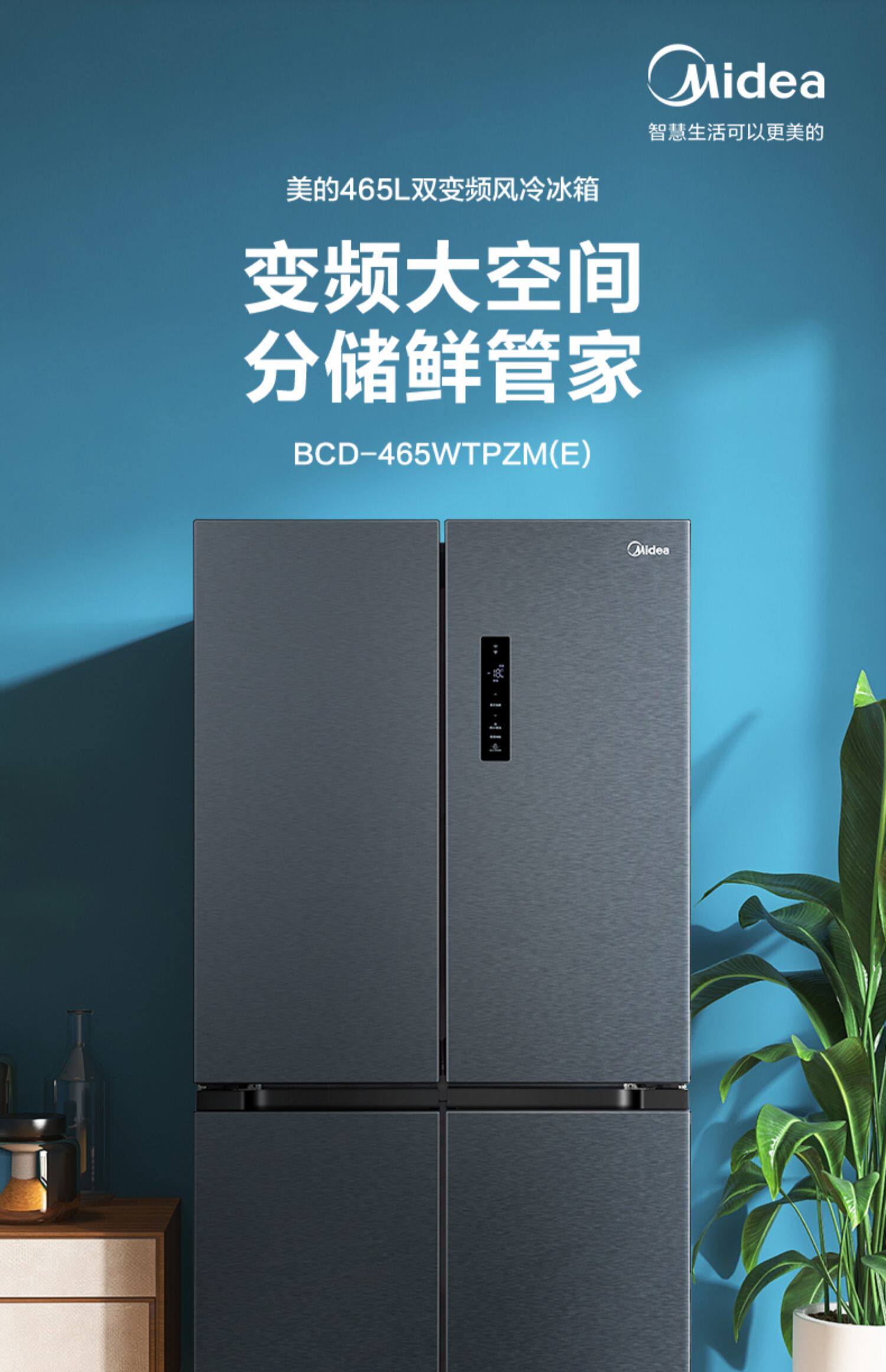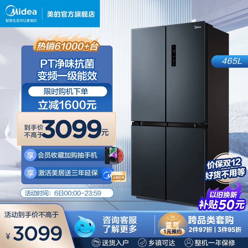 Midea 465L Cross Plason Double Oppend Four -Gate Ultra -Thin First -Level Переменная частота, большая мощность, холодный, без кремового домашнего холодильника