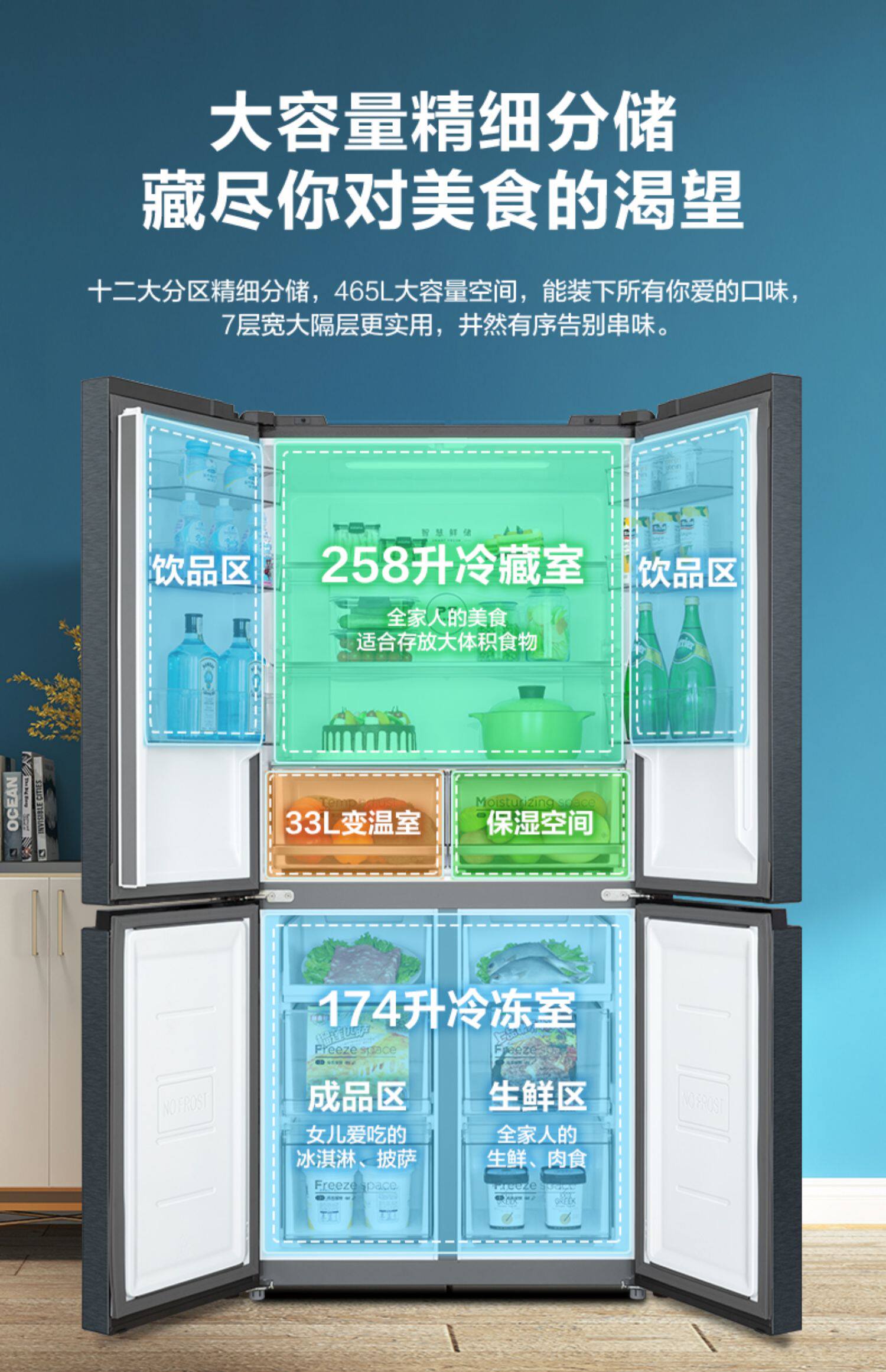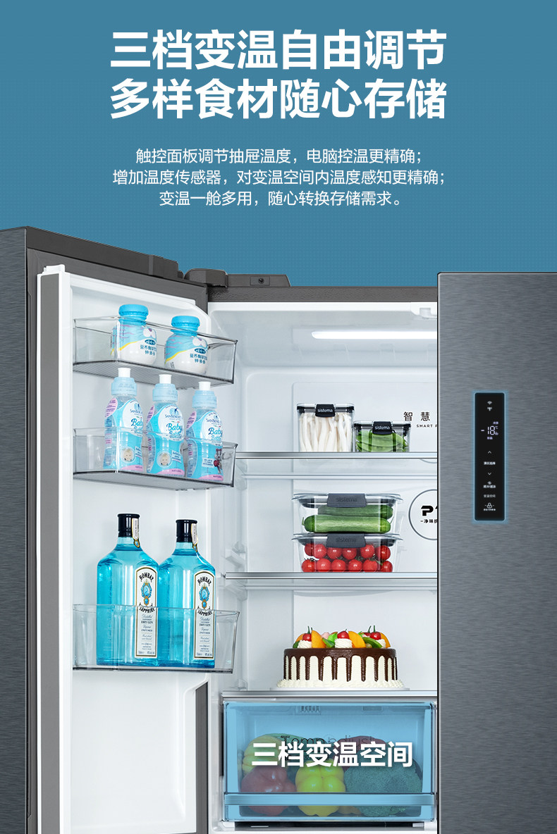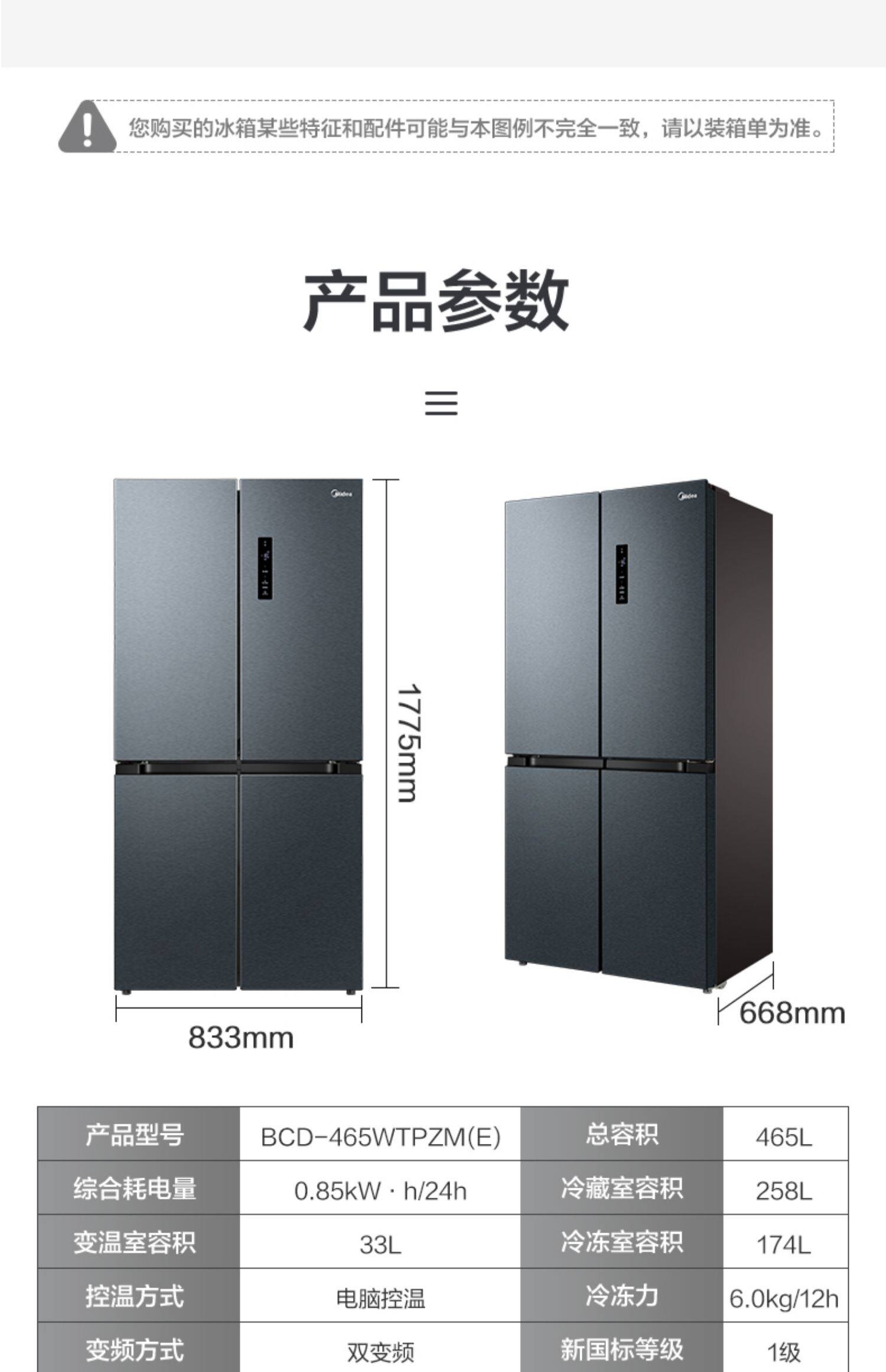 Midea 465L Cross Plason Double Oppend Four -Gate Ultra -Thin First -Level Переменная частота, большая мощность, холодный, без кремового домашнего холодильника