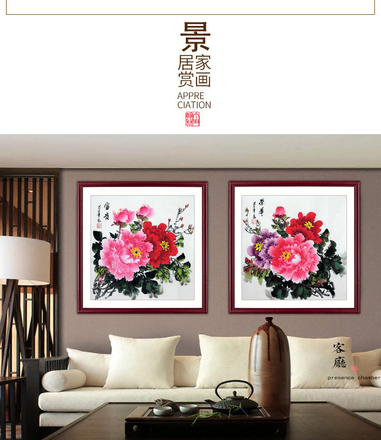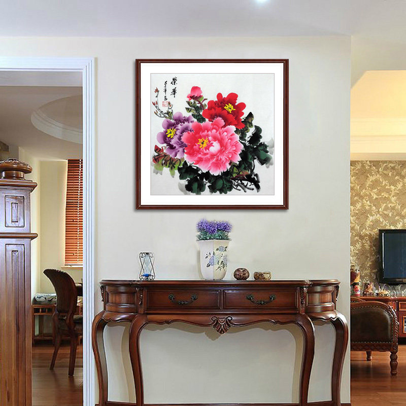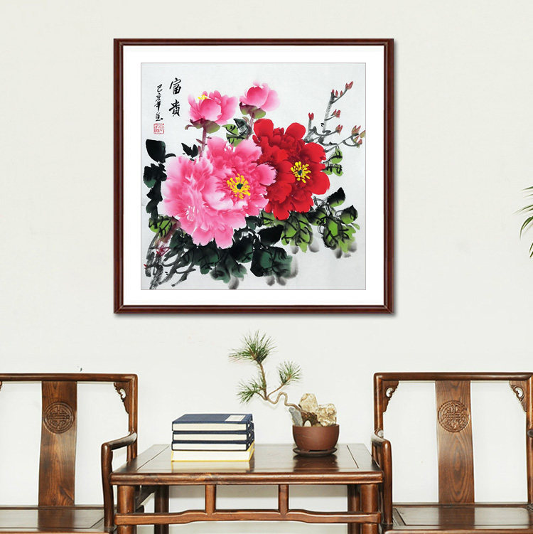 Специальное предложение ручной рисование чернила живопись кантри -рисовать пион Ронгуа богатый трех -боевой квадратной площад