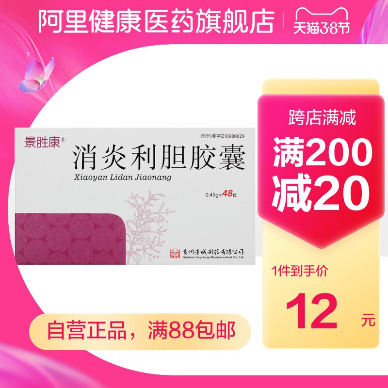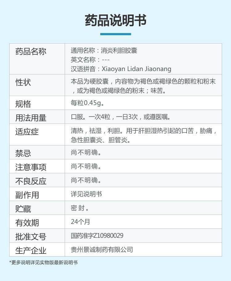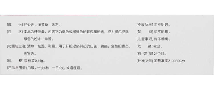 景胜康 Анти -инфляционная билиарная капсула 0,45 г*48 зерна четкого термического и влажности Острый холецистит, горький желчный дукит.