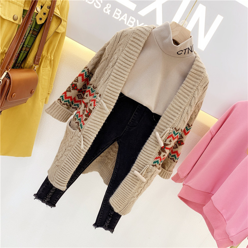 Осенний демисезонный длинный свитер для отдыха, кардиган, детская одежда, V-образный вырез, средней длины