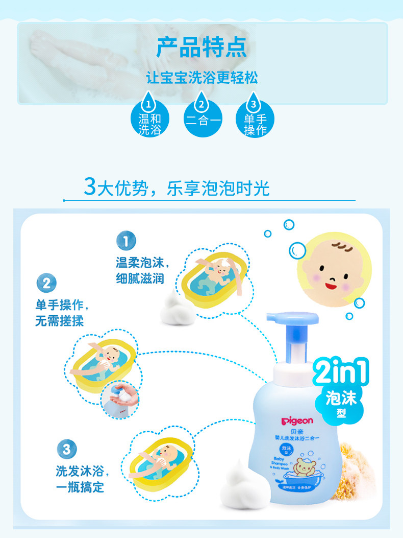 Pigeon, средство детской гигиены, шампунь, детский гель для душа для новорожденных, 2 в 1