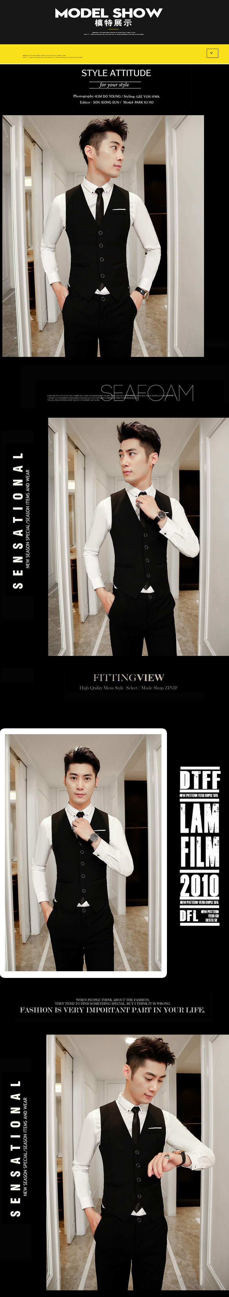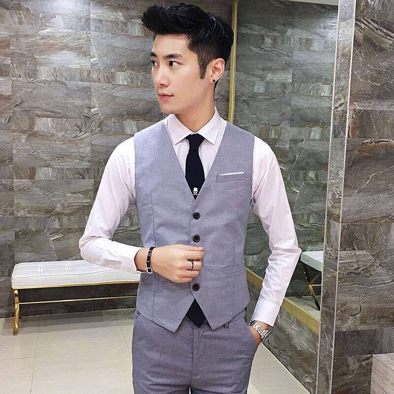 Жилет, черный костюм, униформа, в корейском стиле, V-образный вырез
