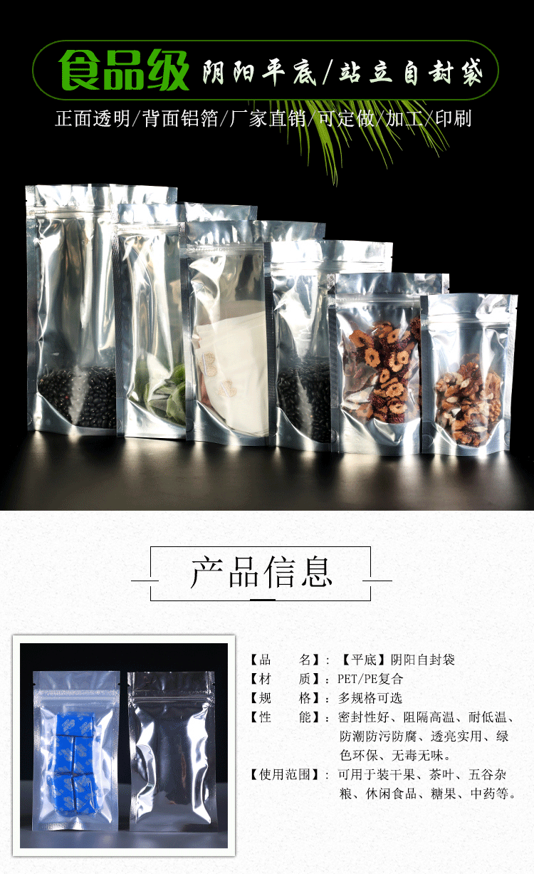 Алюминированный автономный пакет Инь-Ян, самозапечатывающийся пакет, пакет для сухофруктов, чая, пакет для упаковки пищевых продуктов, пакет из алюминиевой фольги, герметичный пакет, индивидуальный заказ