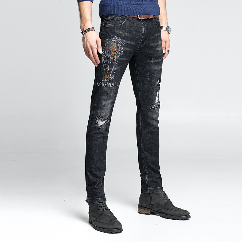 杰雷诺 Трендовые джинсы, джинсовые штаны в стиле хип-хоп, с вышивкой, в стиле панк, облегающий крой