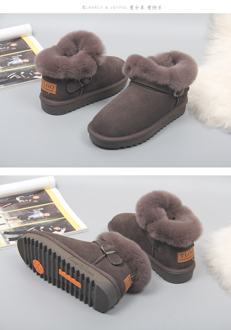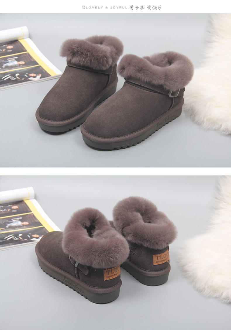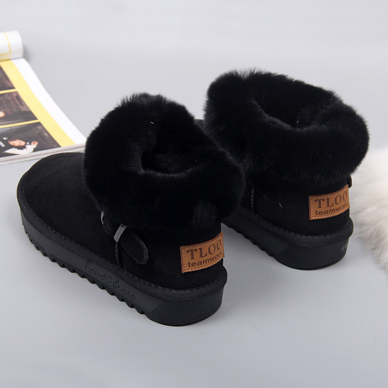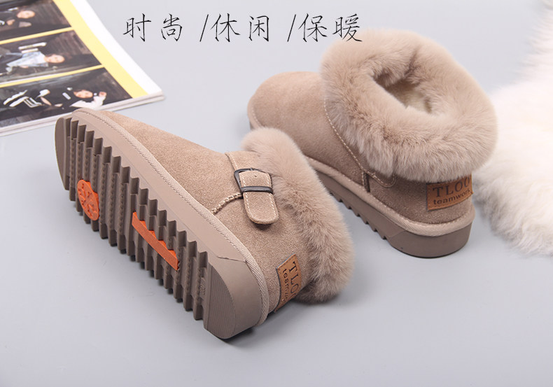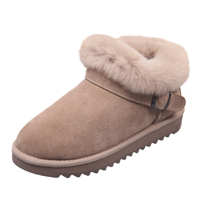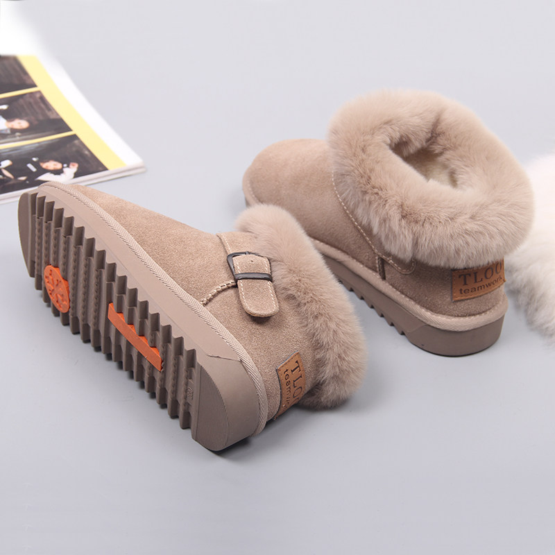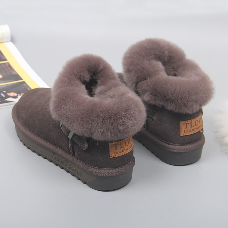 Зимние нескользящие флисовые ботинки на платформе, короткие сапоги, из натуральной кожи