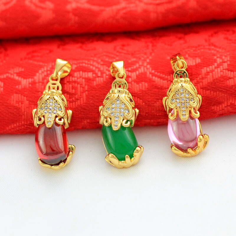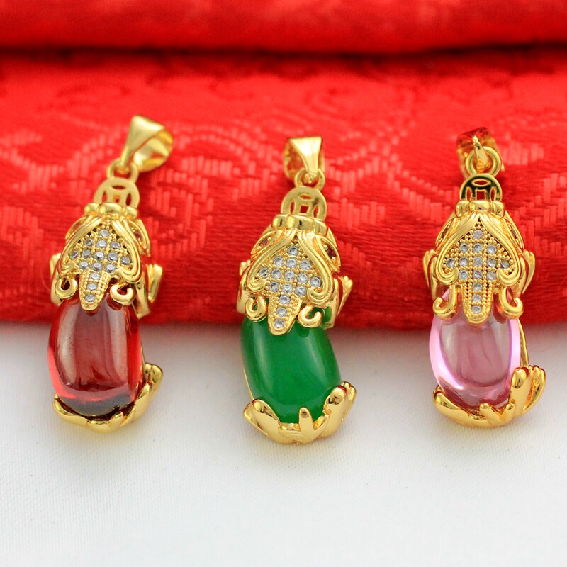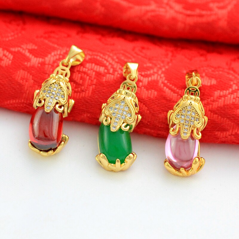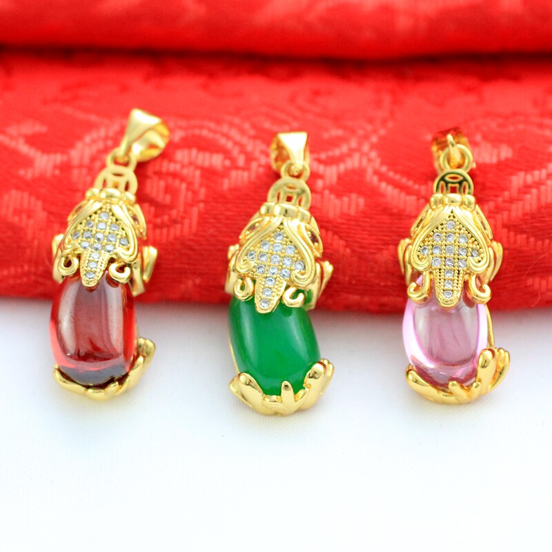 Золотая розовая зеленая красная подвеска, микроинкрустация