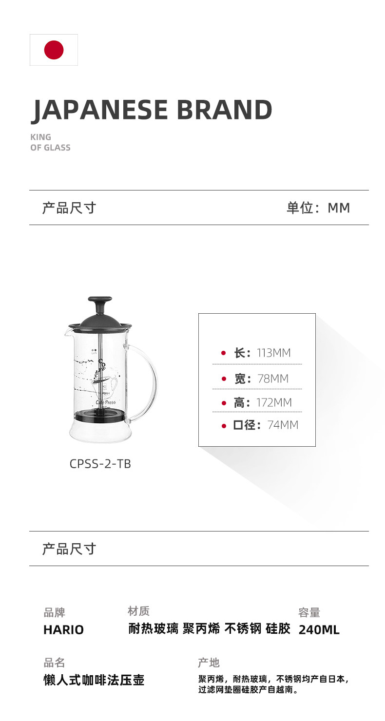 HARIO Японский стеклянный кофейный мундштук, комплект, кофейник, заварочный чайник, французский стиль