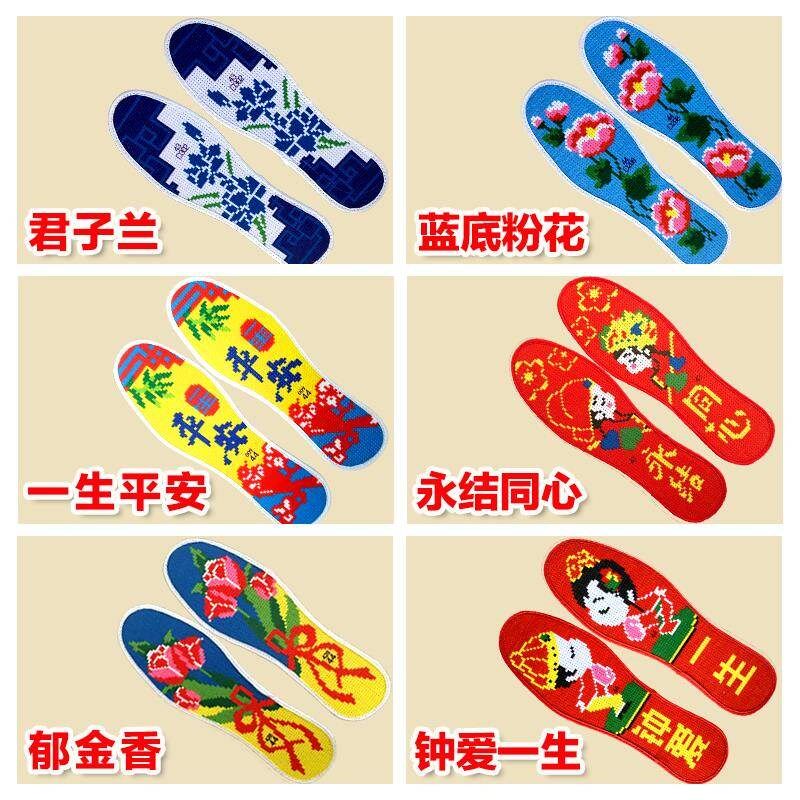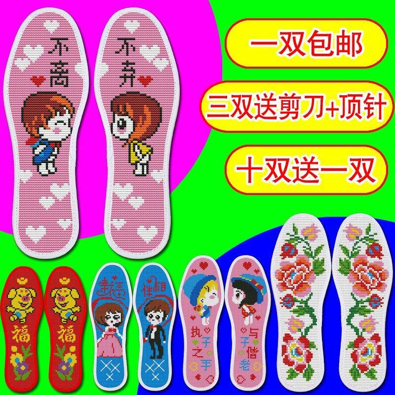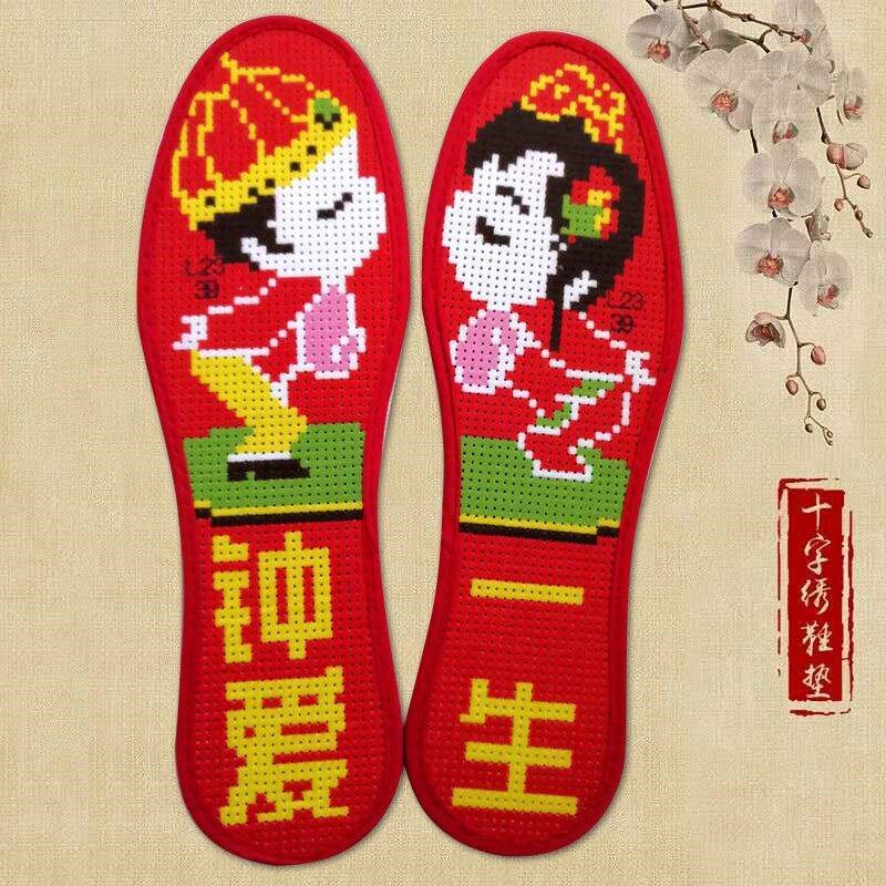 [Бесплатная доставка] стелька по перекрестному удару, напечатанная с полупровершенными мужчинами и женщинами, вышитыми ими