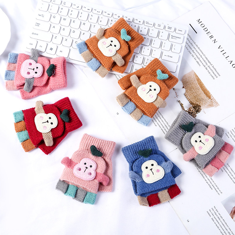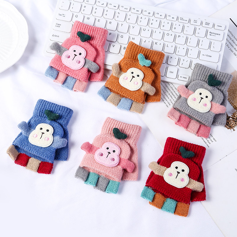 Детские зимние мультяшные перчатки для раннего возраста для мальчиков, в корейском стиле, без пальцев