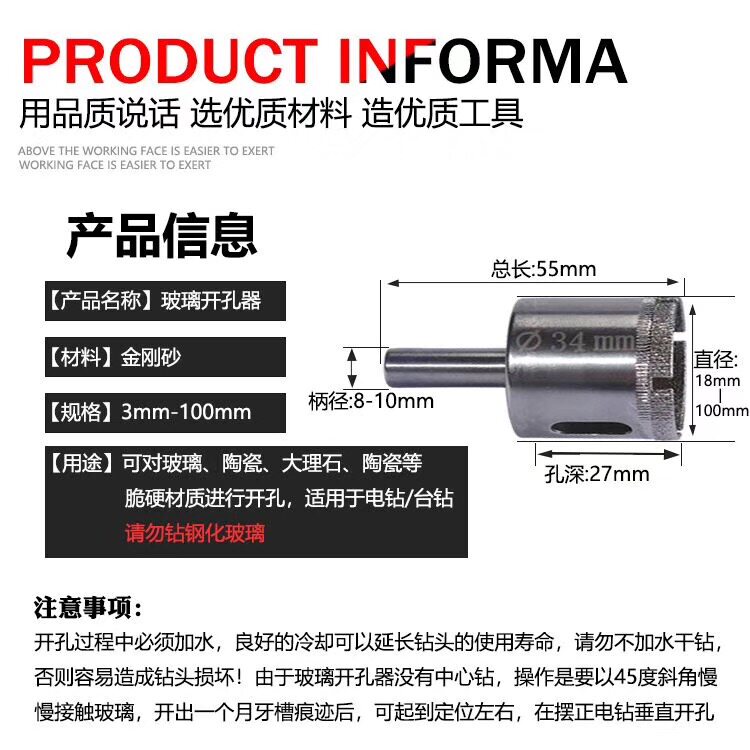 Открывалка для сверления стекла, сверло для плитки, мраморная керамика, расширитель для открывания бутылок вина, дрель для воды, сверло с круглым отверстием