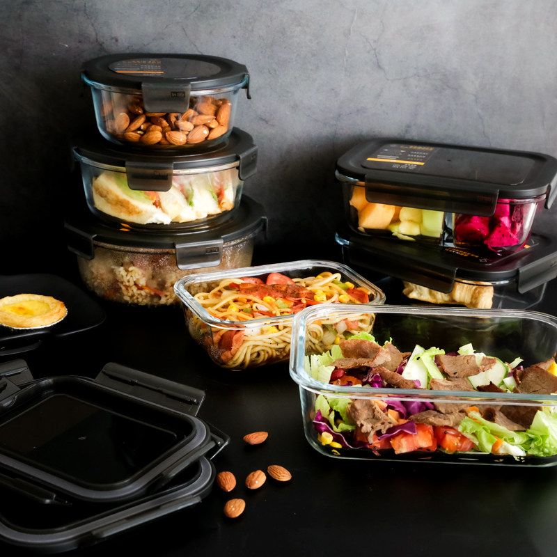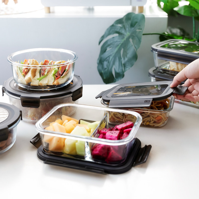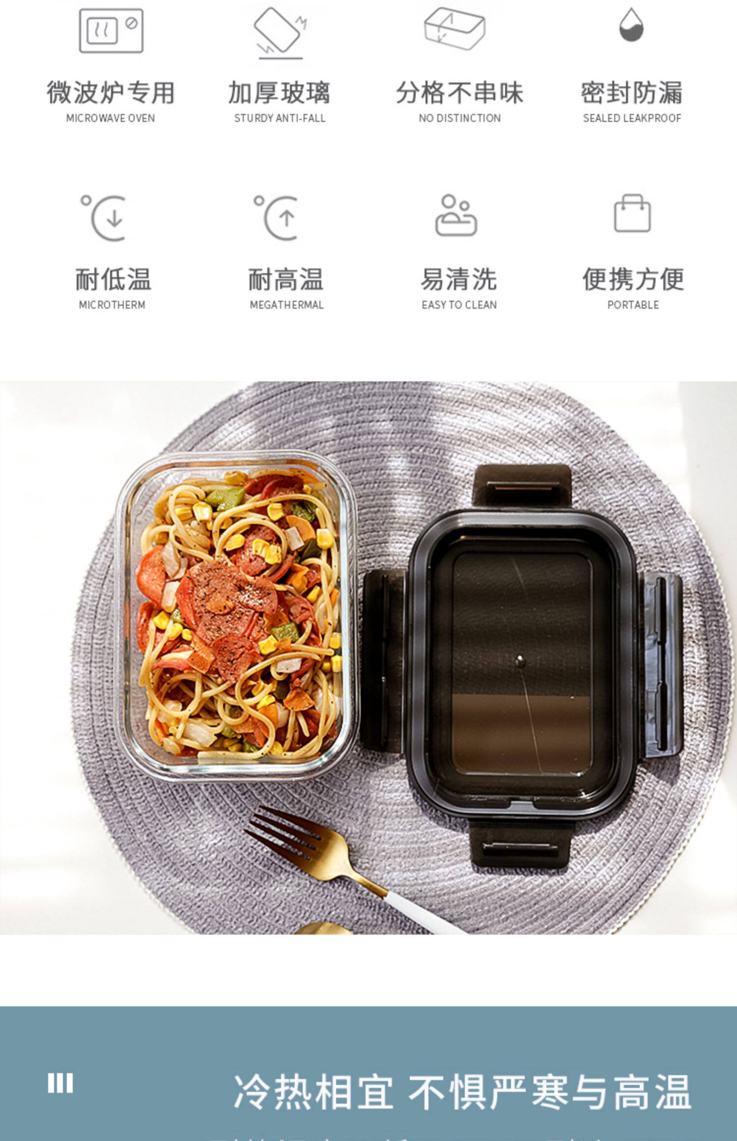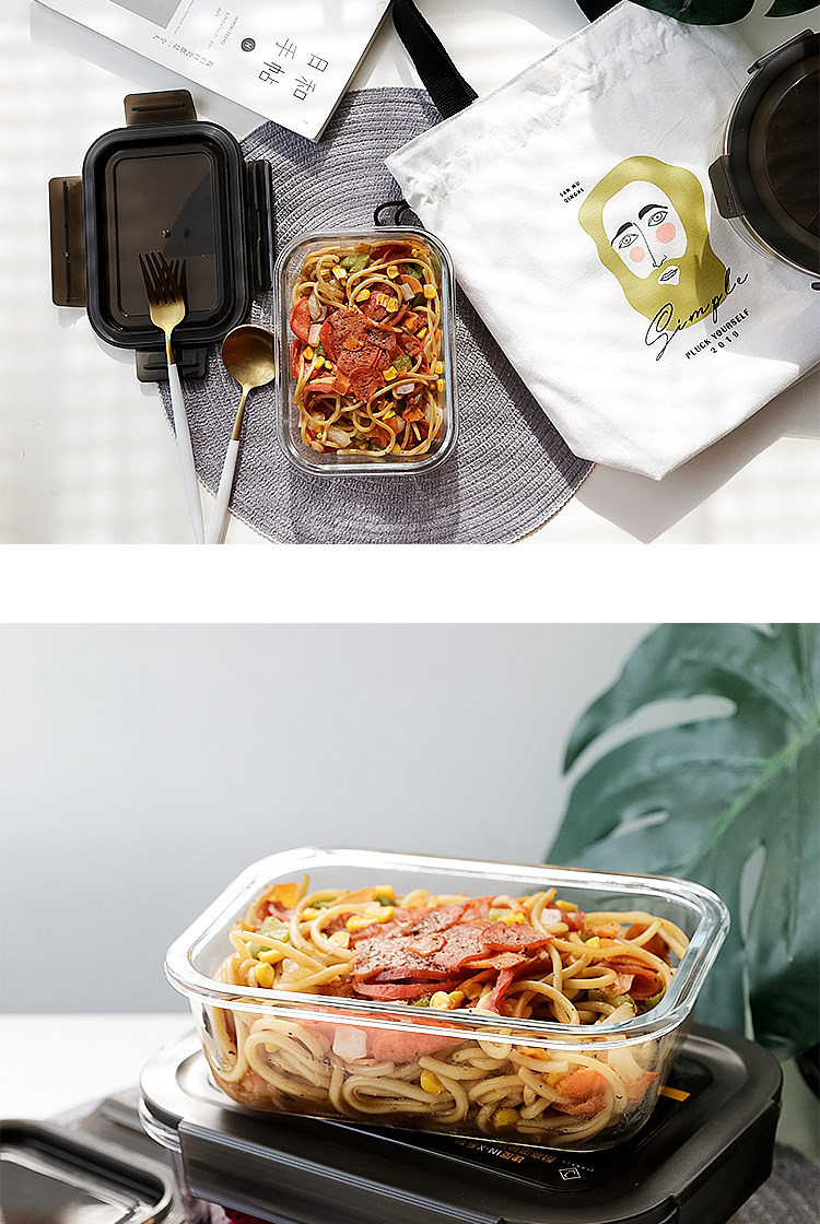 Японская японская прямоугольная коробка сохранения стекла может быть микроволновой печи нагреть ланч -коробку Три -точка офисного работника Bento Box