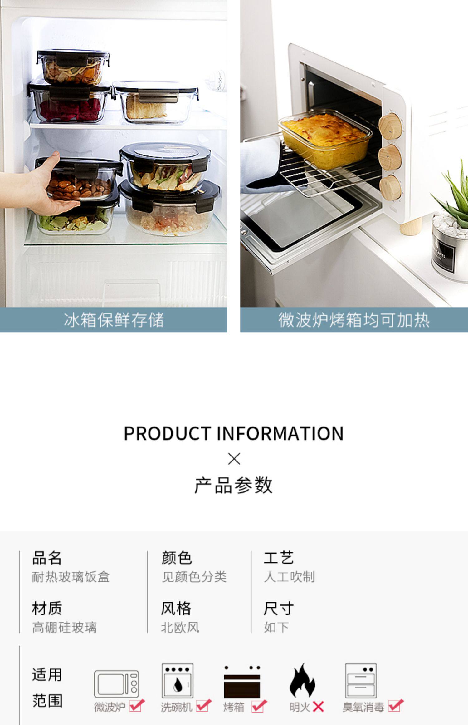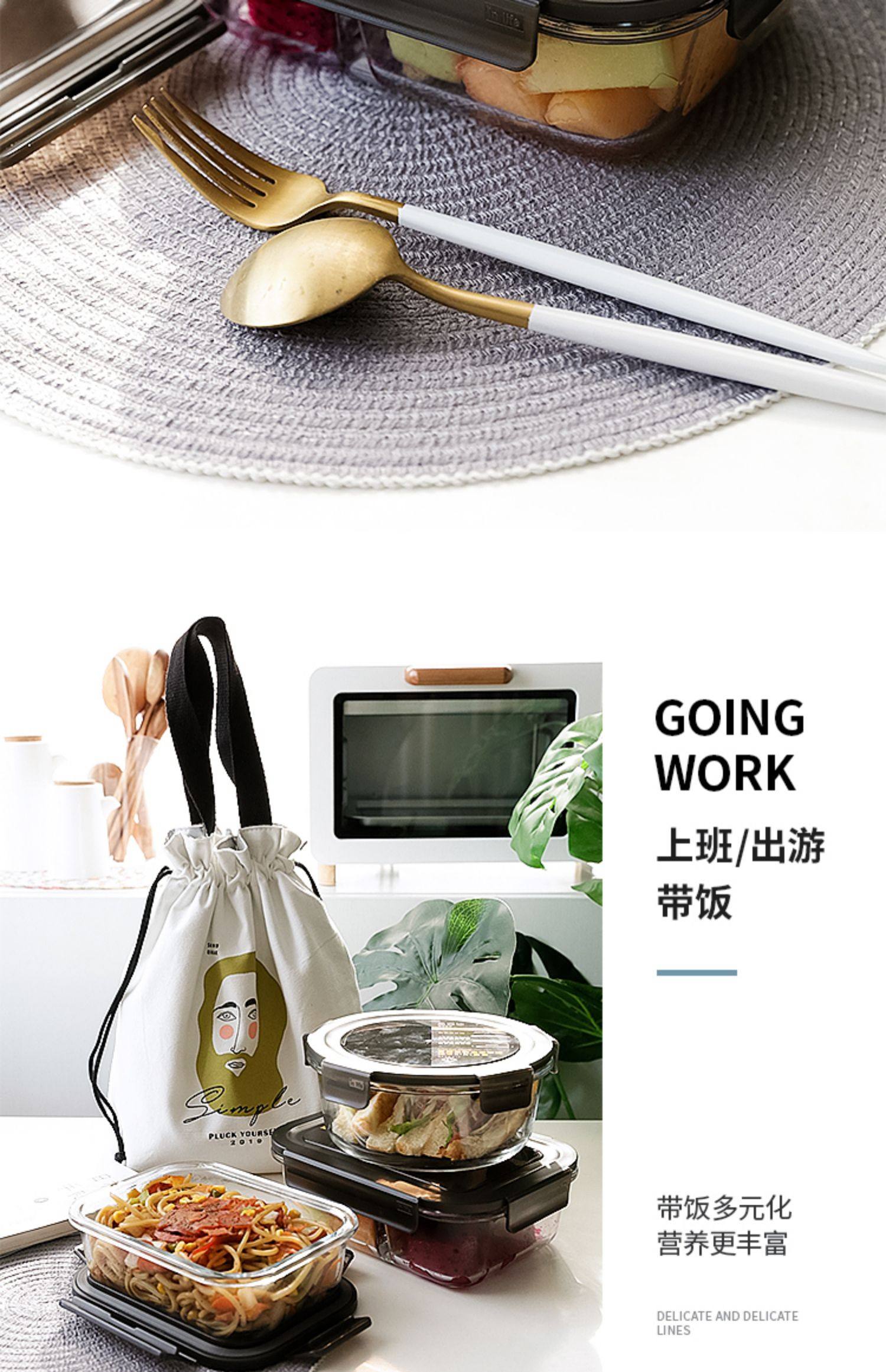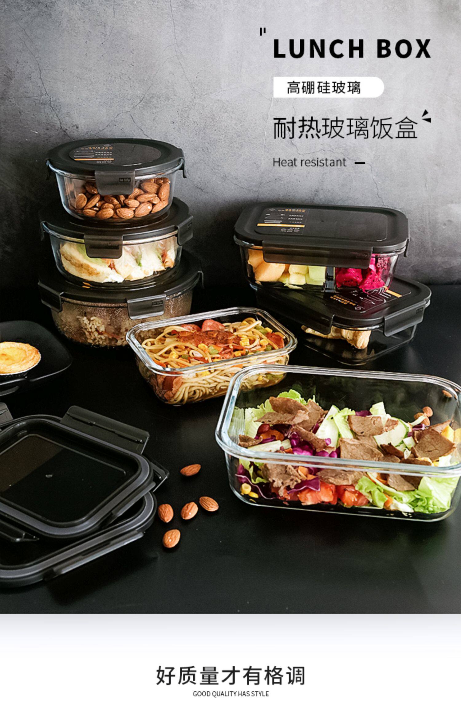 Японская японская прямоугольная коробка сохранения стекла может быть микроволновой печи нагреть ланч -коробку Три -точка офисного работника Bento Box