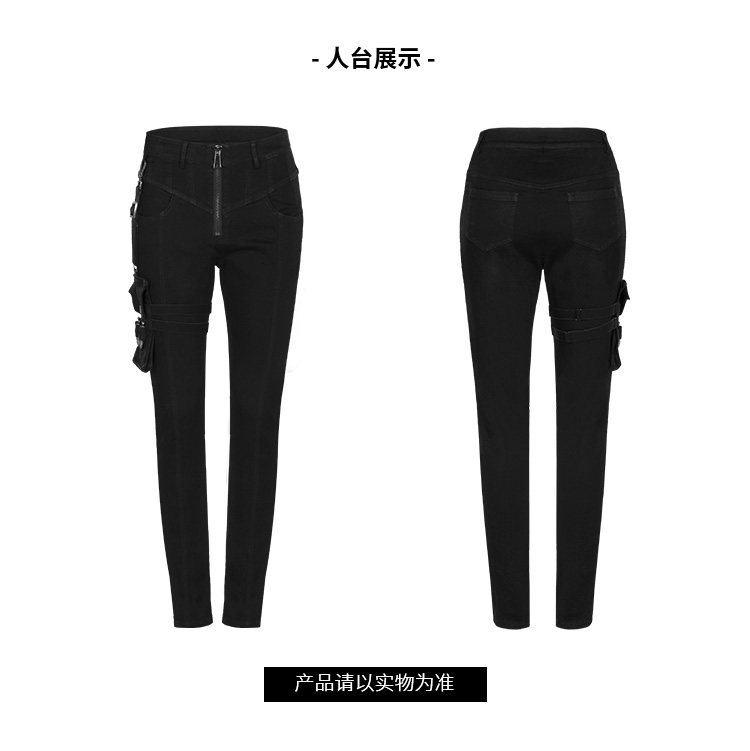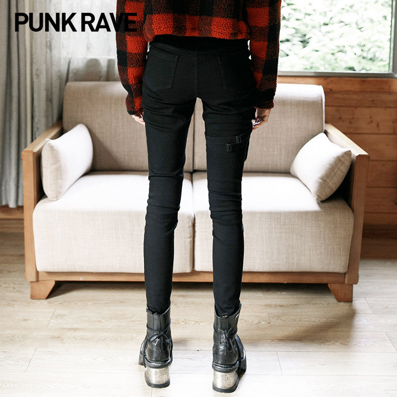 PUNK RAVE Карандаш, штаны, джинсовые джинсы, леггинсы, в стиле панк, высокая талия, свободный прямой крой