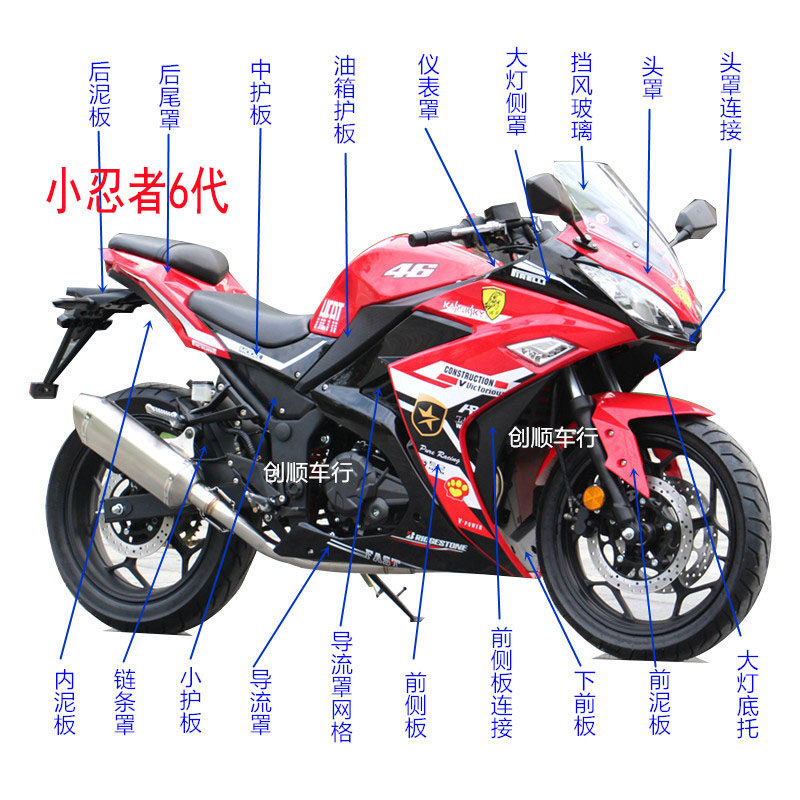 Little Ninja 6th -Generation Shell Полный комплект направляющей крышки топливного бака 2 -го поколения V6 капюшон, фары с большим лампой, фар, передняя корпуса